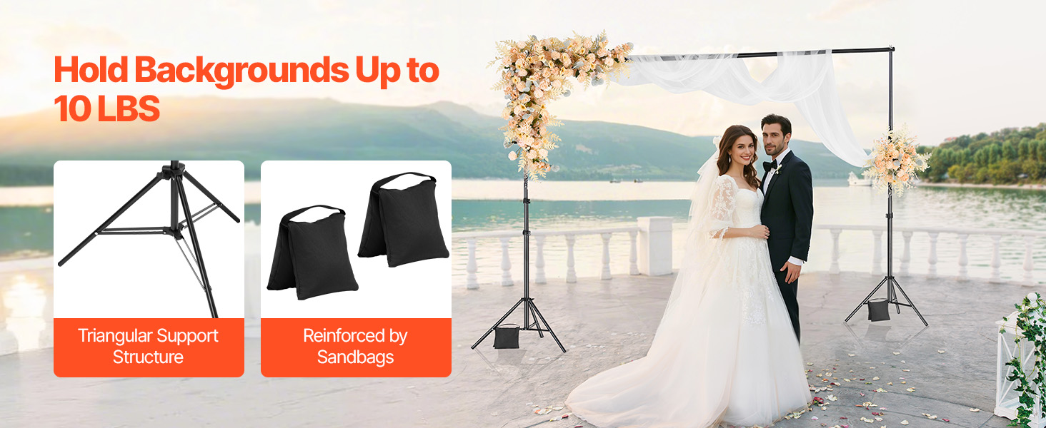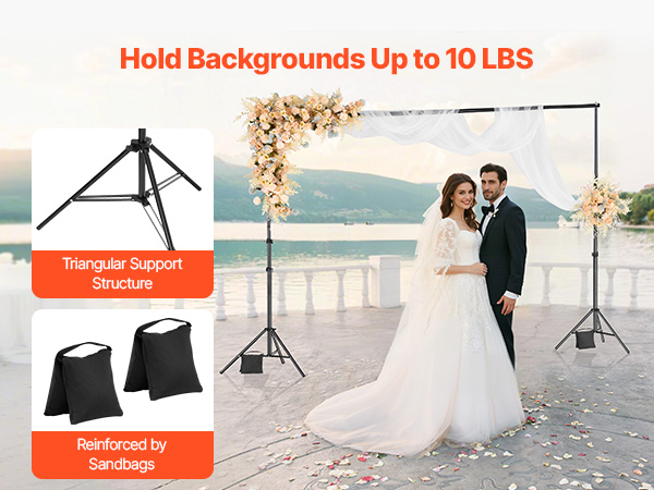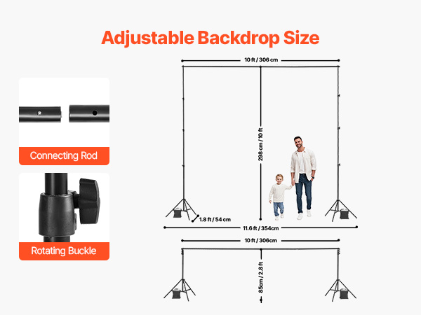 VEVOR Backdrop Stand, 10 x 10 ft Adjustable Photo Backdrop Stand Kit, Portable Background Backdrop Stand with 4 Crossbars, Heavy Duty Projector Screen Stand, for Wedding, Photo Video Studio & Party