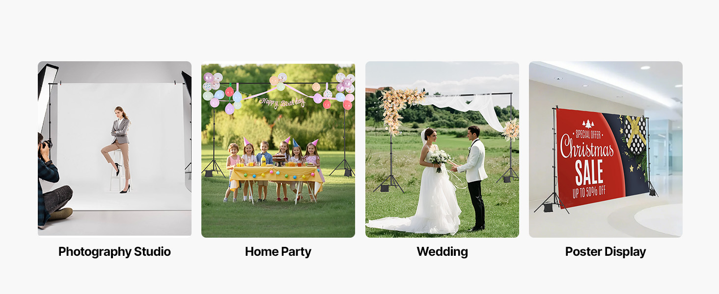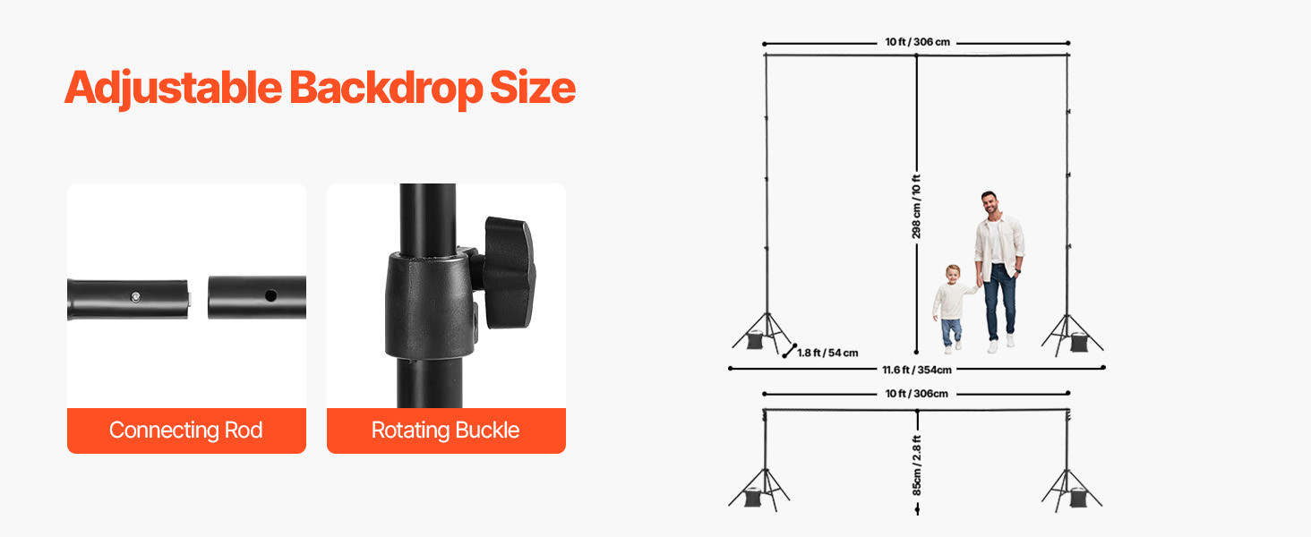 Šiame fone stovi funkcijos 2 trikojo palaiko stabilumo ir patvarumo, su 10 svarų svorio pajėgumų. Jos reguliuojamas dydis tinka didelių backdrops ir idealiai tinka dirbtuvėse, namuose, viešbučiuose, ir etapais.
