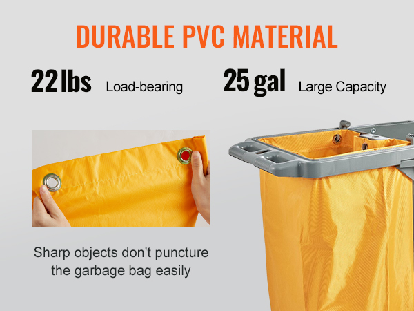 • Dilimo, Atsparumas Šiukšlių Maišas: Dydis: 25 gals/94.6 L. Pakrovimo pajėgumas: 22 kg/10 kg. Mūsų šiukšlių maišelis yra pagamintas iš tvirto PVC ir ne ašaros lengvai. Sagties žiedai praėjo mūsų traukti tyrimas, siekiant užtikrinti, kad jie bus ne nukristi. Pakabinta šiukšlių maišą ir jį naudoti tiesiogiai, niekada nebuvo paprasčiau.