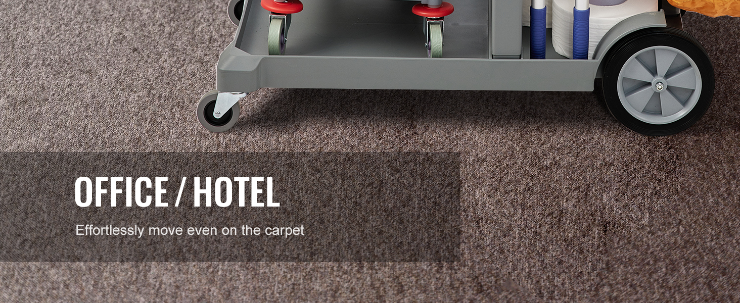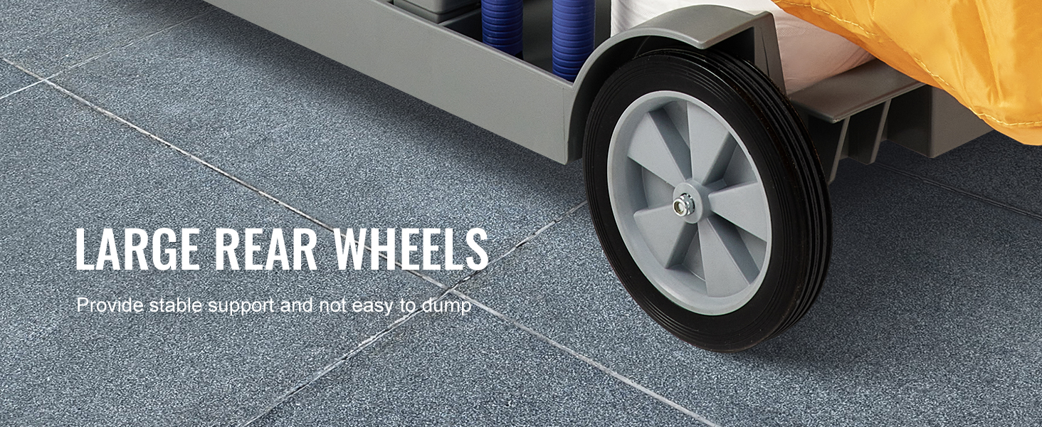 • Atsikratyti Sujaukia bet Kur: Įrengtos dvi kompiuterių 360° universal priekiniai ratukai, 2 vnt stabili galiniai ratai ir plati rankena, galima stumti sargų krepšelį ant ratų be vargo. Greitai išvalyti visus atliekų biuruose, viešbučiuose, oro uostuose, butų ir kitų vietų.