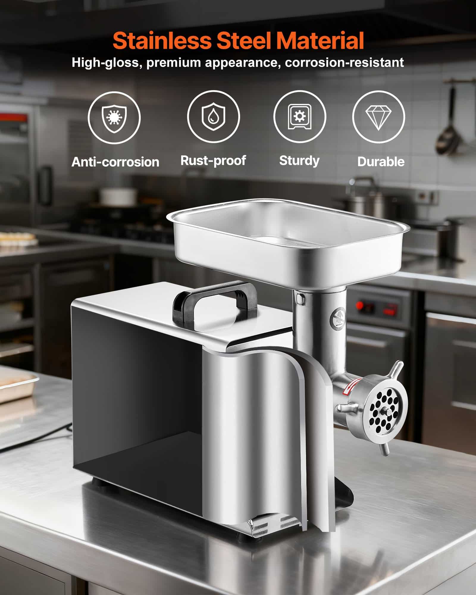 VEVOR Meat Grinder, 21 Lbs/Min Capacity Electric Meat Grinders with Blade, Grinding Plate, Sausage Maker, Stainless Steel Commercial Meat Mincer for Kitchen Restaurant Butcher Store