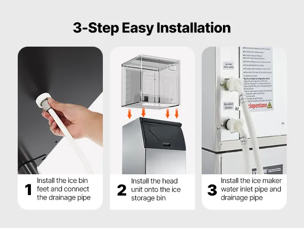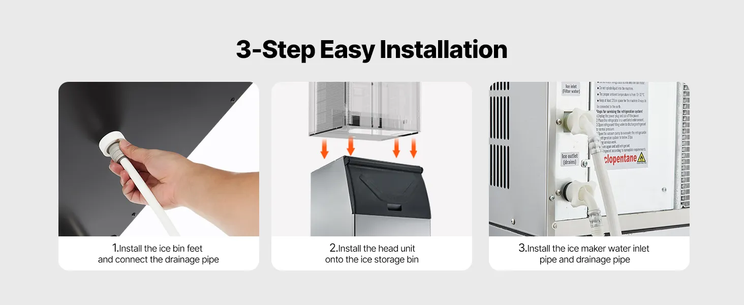 The commercial ice storage bin is easy to install in just 3 simple steps. Quickly set up your ice maker and start making ice.
