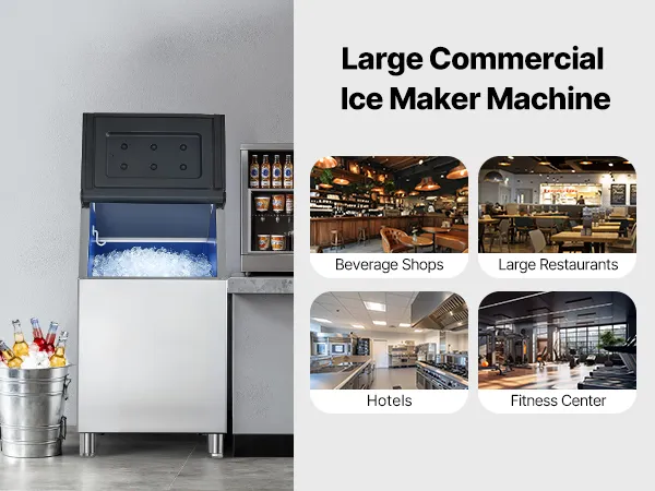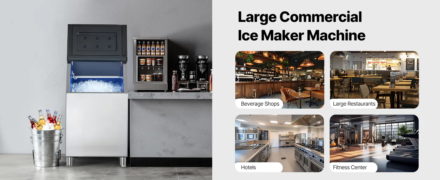 Ice cube machine siūlo platų ledų išėjimo, todėl idealiai tinka komercinės virtuvės, restoranų, barų, viešbučių ir gėrimų parduotuvės.