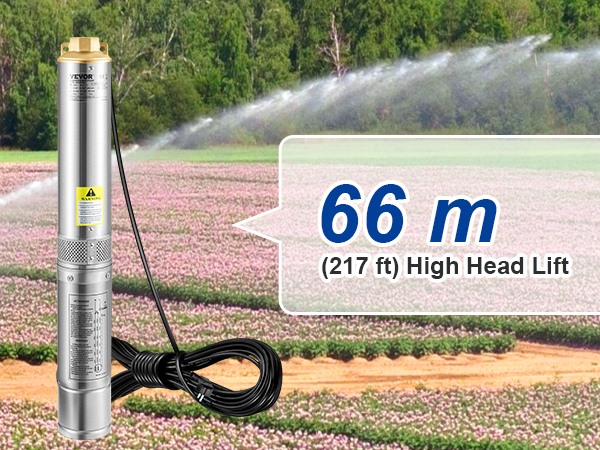 VEVOR Deep Well Submersible Pump, 750W 230V/50Hz, 100L/min 66 m Head Sand Resistant <5%, 20 m Electric Cord, 7.6 cm Stainless Steel Water Pumps for Industrial, Irrigation & Home Use, IP68 Waterproof