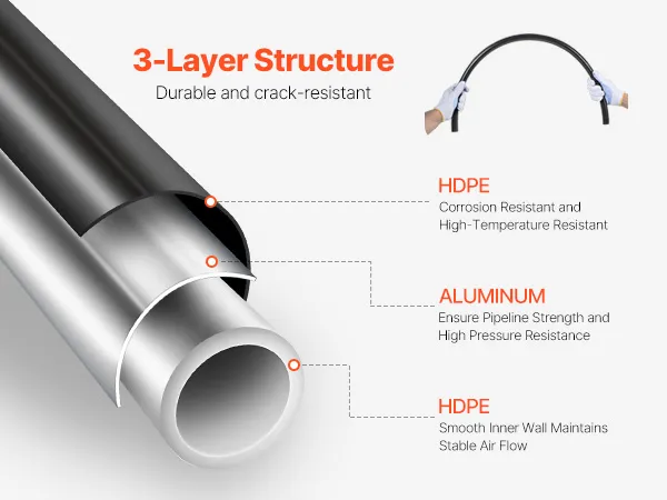 • Trijų sluoksnių Patvarumą: Inžinerijos atsparia HDPE-Aliuminio-HDPE trijų sluoksnių struktūra, mūsų 200FT x 3/4" oro kompresorius linija rinkinys suteikia unikalią korozijos & kreko pasipriešinimo, ir stiprybės atlaikyti didelį spaudimą. Tai užtikrina patikimą ir efektyvų oro srauto, puikiai tinka naudoti savo gamyklos ir dirbtuvės.
