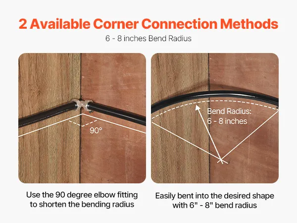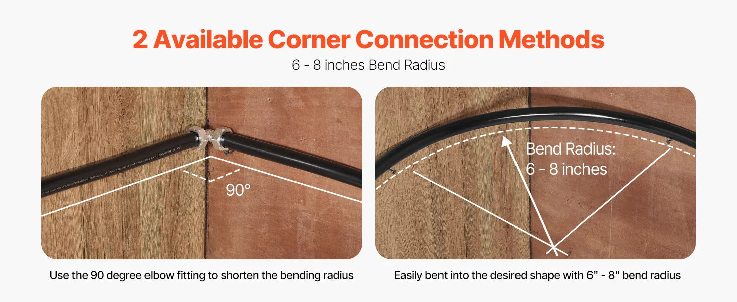 • Lanksčios Montavimo Galimybės: Šis suspausto oro vamzdžiai sistema suteikia 2 lankstus kampas ryšio funkcijos. Galite pasirinkti 90 laipsnių alkūnė montavimo teisė-kampinis ; arba pasirinkti lenkimo spindulys metodas, leidžiantis jums lengvai formos vamzdžių lenkimo spindulys svyruoja nuo 6 iki 8 cm.