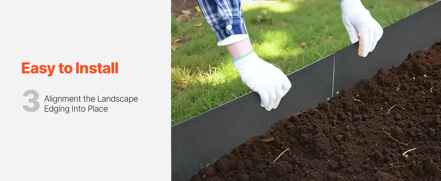 VEVOR Steel Landscape Edging, 3 Packs 40 x 6 in Rust-Resistant Metal Landscape Edging, Bendable Garden Edging Border, Heavy Duty Lawn Edging, Easy-to-Install, Flower Bed Yard Pathway Divider Black