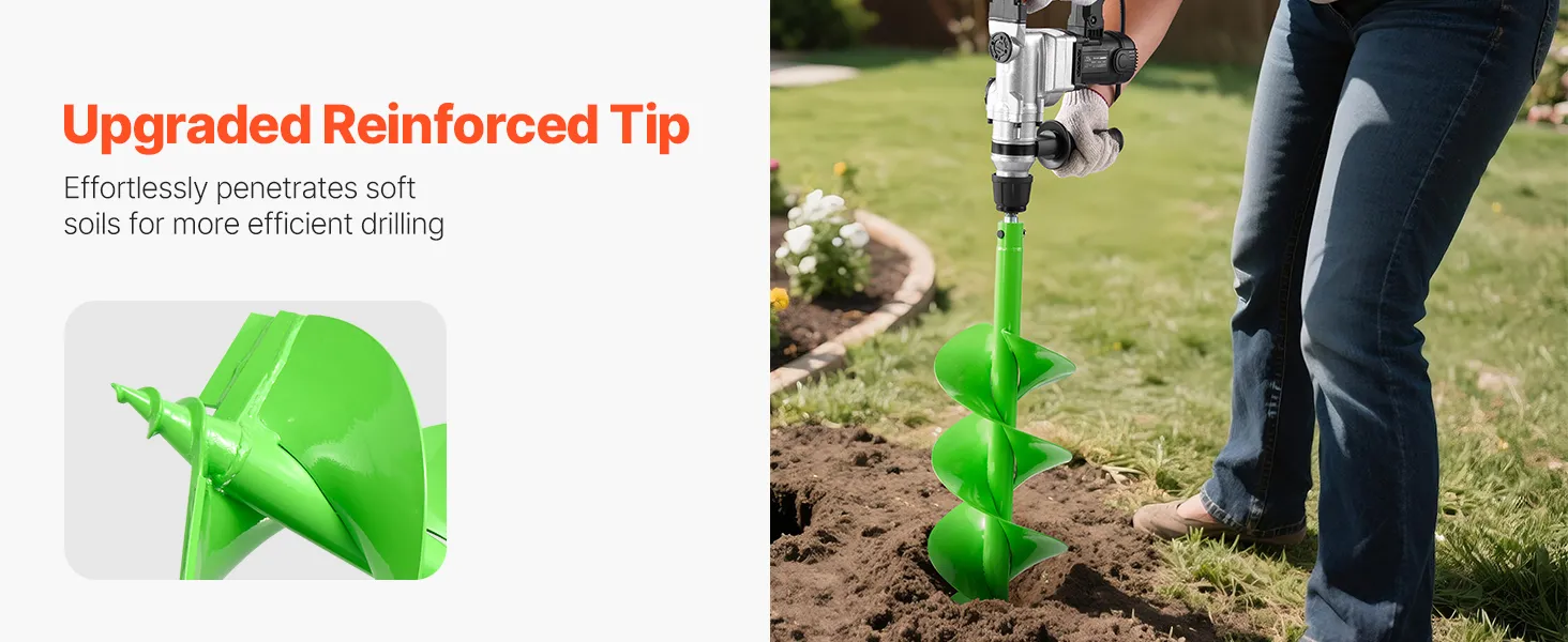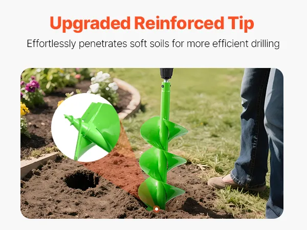 Mūsų sraigės grąžtas be vargo grąžtai per minkštas dirvožemio, todėl sodinti svogūnėlių, gėlių ir daržovių greičiau ir paprasčiau. Idealiai tinka sodo entuziastai nori sutaupyti laiko ir pastangų. Šios sraigės grąžtas yra taip pat puikiai tinka gręžti skyles liko tvoros, palapinės, arba lauko apdaila.