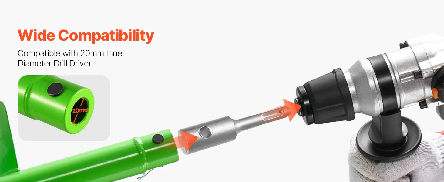 Q: kokio tipo gręžimo suderinamas su šia sraigės tiek?A: Dauguma sodo sraigės bitų tilps į bet kurią 3/8" hex drive gręžimo arba 20mm ID ratai, gręžimo, kad jie atitiktų standarto belaidžio ar kuro grąžtai. Įsitikinkite, kad jūsų grąžtas turi pakankamai sukimo momento efektyvus kasimas.Q: Kas dirvožemio tipų, tai gali sraigės grąžtas rankena?A: Tai sraigės gerai veikia, laisvas, kad šiek tiek suspaustas dirvožemis, įskaitant sodas lovos, molio ir smėlio dirvožemyje. Tačiau labai akmenuotas ar sunkiai supakuoti dirvožemio, daugiau galingas gręžimo ir papildomų pastangų gali prireikti.Q: Ką dar aš galiu naudoti šį sraigtą grąžtas, skirtas be sodinti?A: be kasti skyles svogūnėlių, gėlių ir daržovių, taip pat galite gręžti skyles mažas aptvarų atramoms, palapinės, arba lauko apdaila.