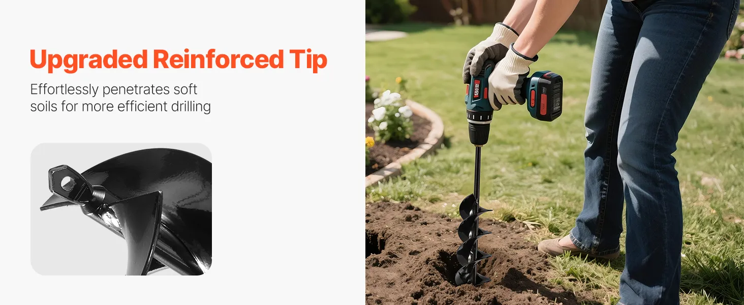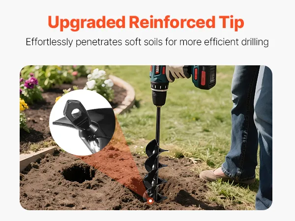 Q: kokio tipo gręžimo suderinamas su šia sraigės tiek?A: Dauguma sodo sraigės bitų tilps į bet kurią 3/8" hex drive gręžimo arba 20mm ID ratai, gręžimo, kad jie atitiktų standarto belaidžio ar kuro grąžtai. Įsitikinkite, kad jūsų grąžtas turi pakankamai sukimo momento efektyvus kasimas.Q: Kas dirvožemio tipų, tai gali sraigės grąžtas rankena?A: Tai sraigės gerai veikia, laisvas, kad šiek tiek suspaustas dirvožemis, įskaitant sodas lovos, molio ir smėlio dirvožemyje. Tačiau labai akmenuotas ar sunkiai supakuoti dirvožemio, daugiau galingas gręžimo ir papildomų pastangų gali prireikti.Q: Ką dar aš galiu naudoti šį sraigtą grąžtas, skirtas be sodinti?A: be kasti skyles svogūnėlių, gėlių ir daržovių, taip pat galite gręžti skyles mažas aptvarų atramoms, palapinės, arba lauko apdaila.