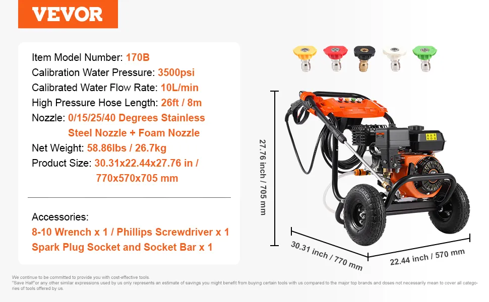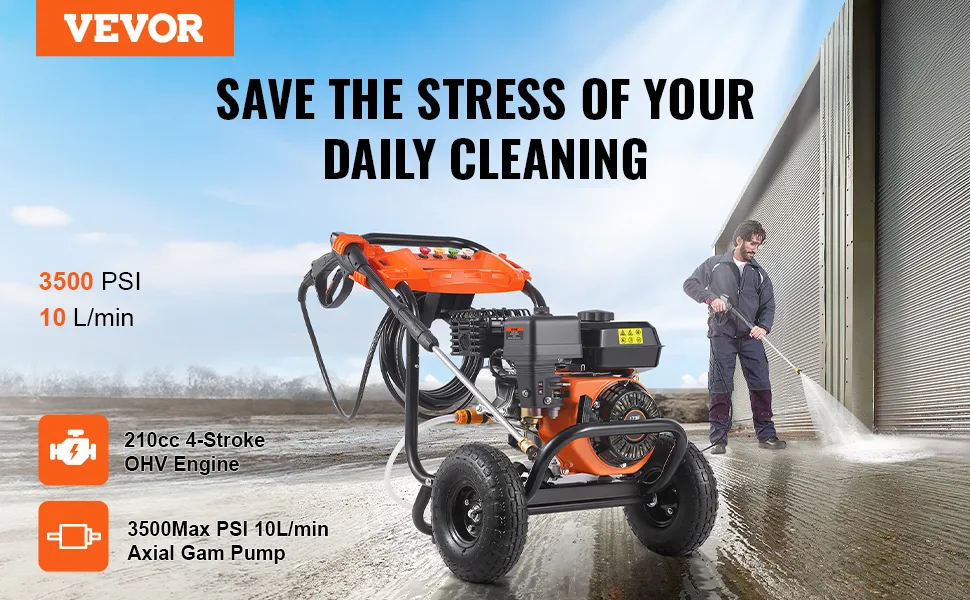 VEVOR Gas Pressure Washer 3500 PSI 10L/min 2.6 GPM with 5 Nozzle Set for Cars