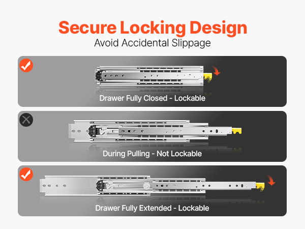 VEVOR 1 Pair Full Extension Drawer Slides 16 18 20 24 30 35 37.4 59 24 32 36 40 48 60 in, 500 lbs Load Capacity Locking Drawer Slides, Ball Bearing with Lock Side Mount Drawer Slide Rail