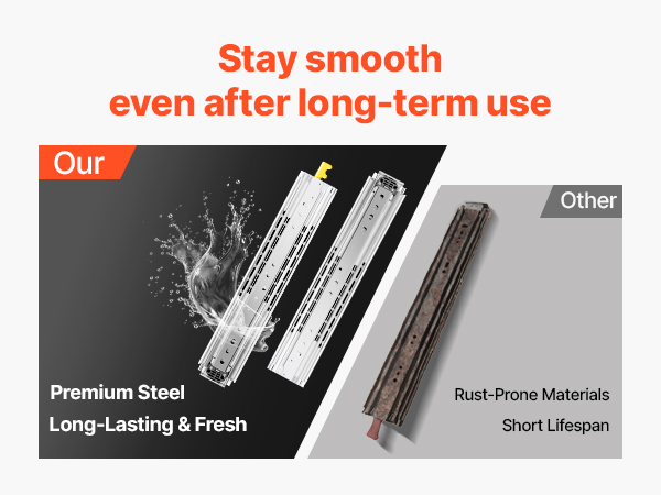 Su 500 svarų apkrova, šį stalčių laikikliai yra pagaminti iš aukštos kokybės plieno ir yra rūdžių ir korozijos-atsparus ir pastatytas paskutinis, atitinkantį visus jūsų keliamoji poreikius.