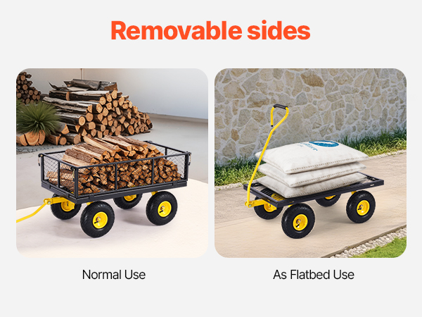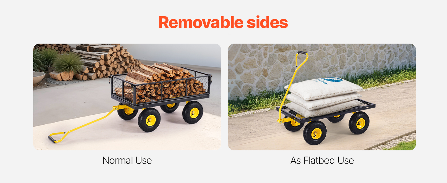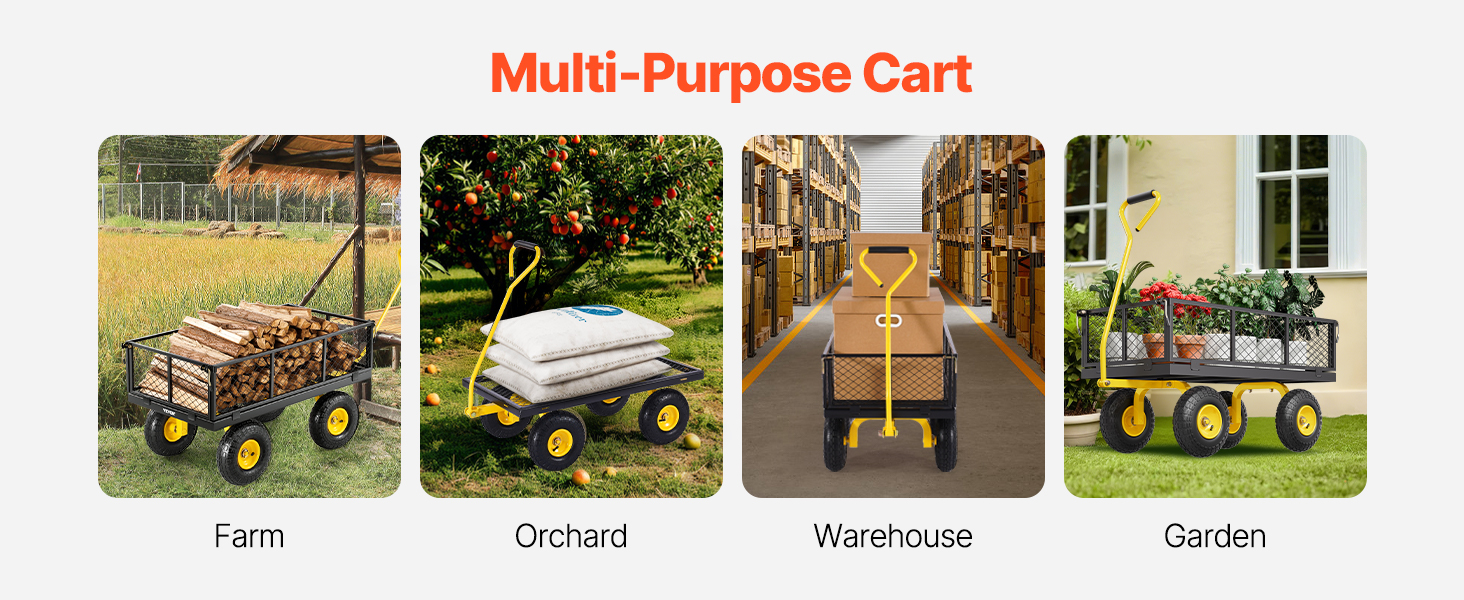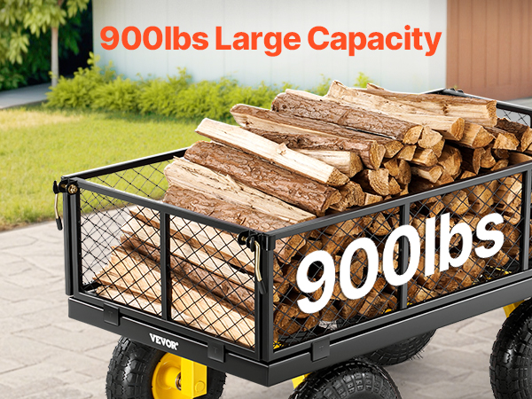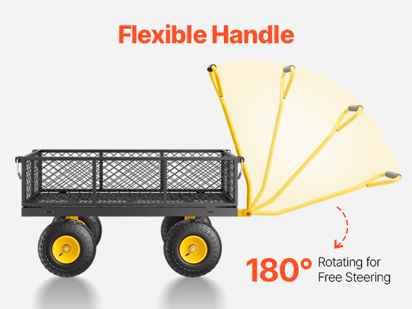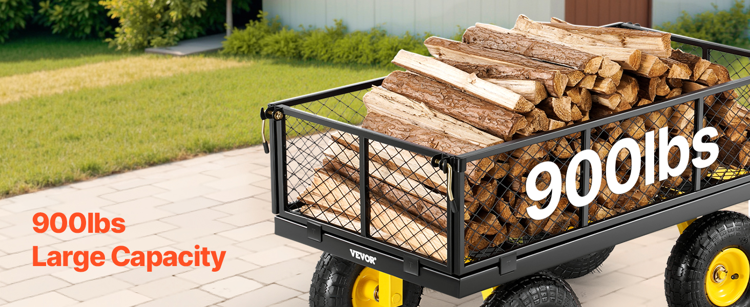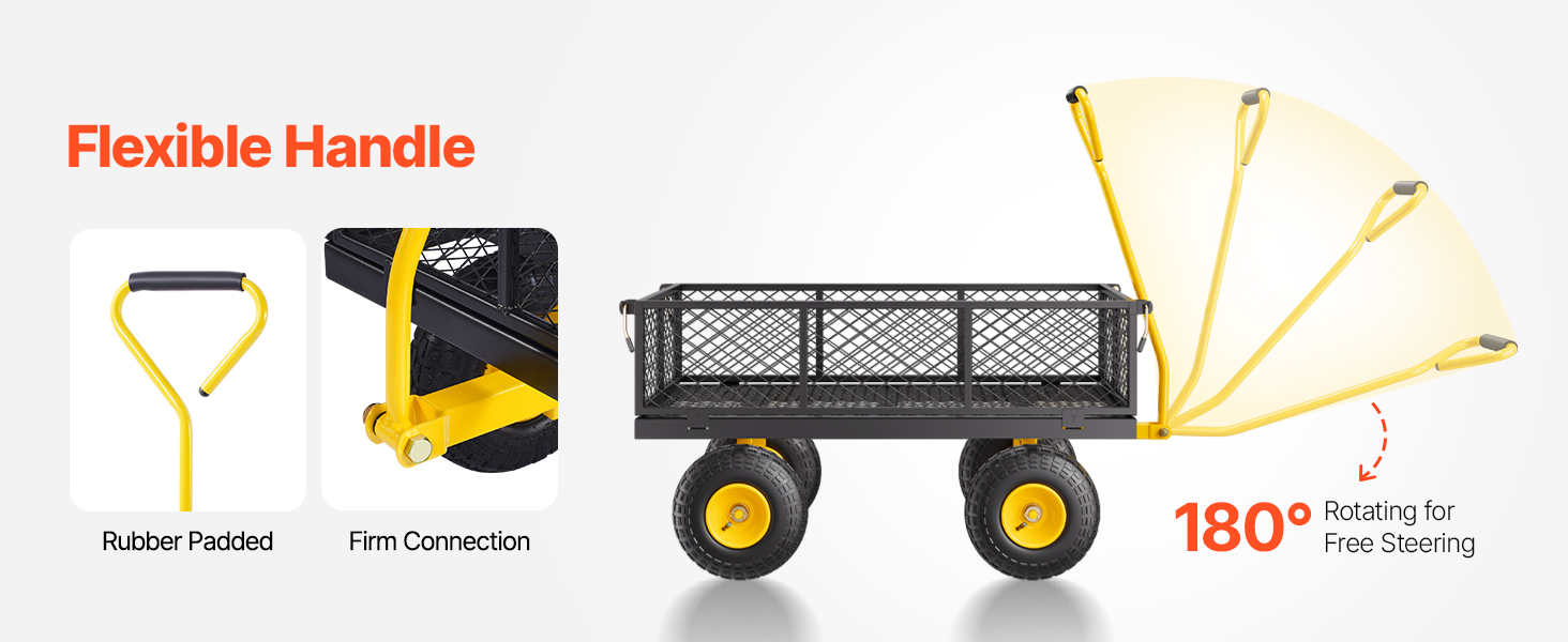 VEVOR 900 Lbs Heavy Duty Steel Garden Cart, Garden Wagon Cart on Wheels, Outdoor Metal Yard Utility Wagon Carts with 10" Tires and Mesh Removable Sides(Convert to Flatbed) and 180°Rotating Handle