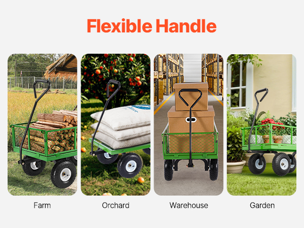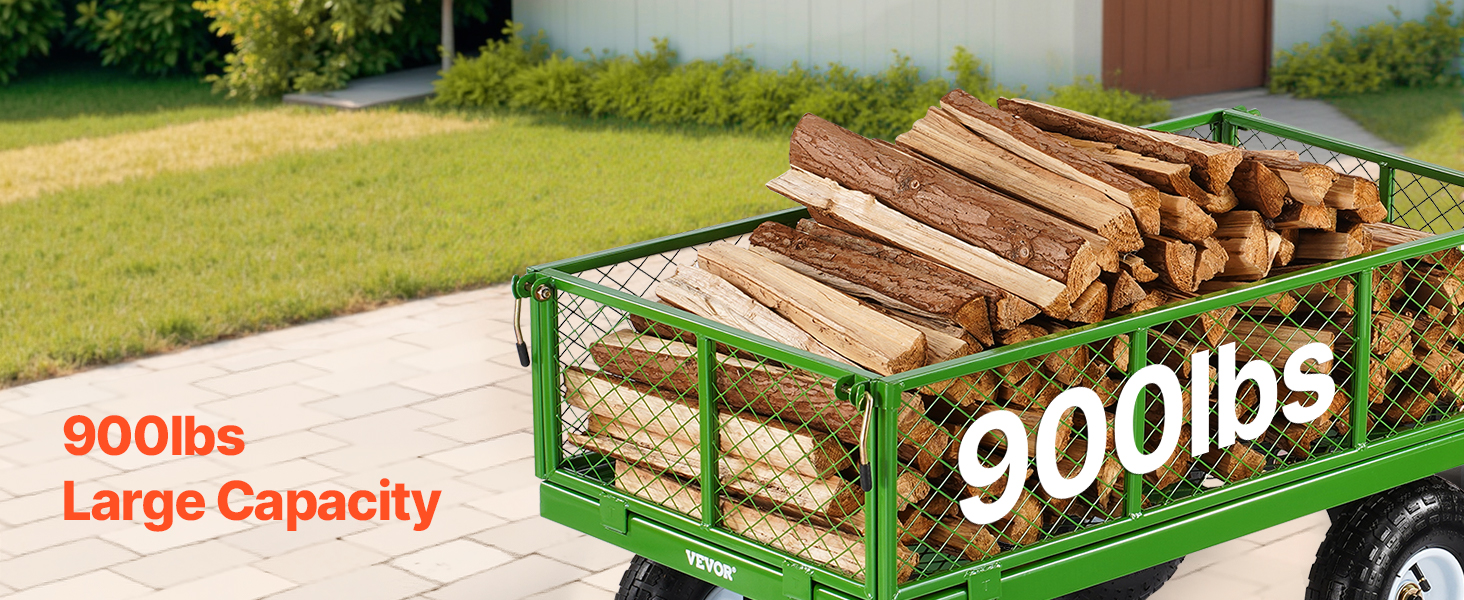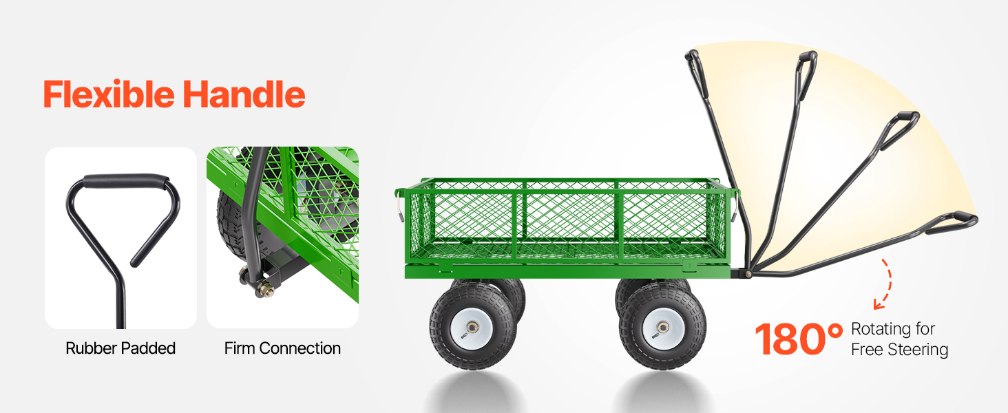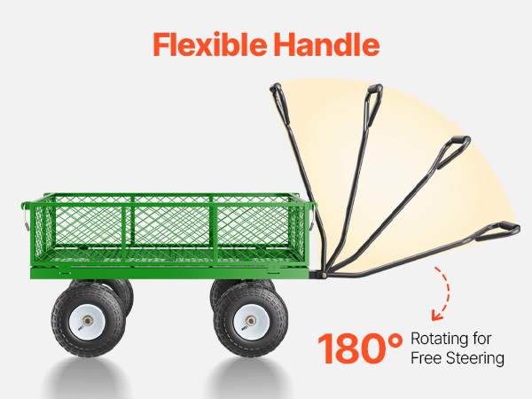 VEVOR 408 kg plieninė sodo vežimėlis su 10" ratais, tinklinės nuimamos sienelės, 180° rankena, sunkių krovinių vežimėlis