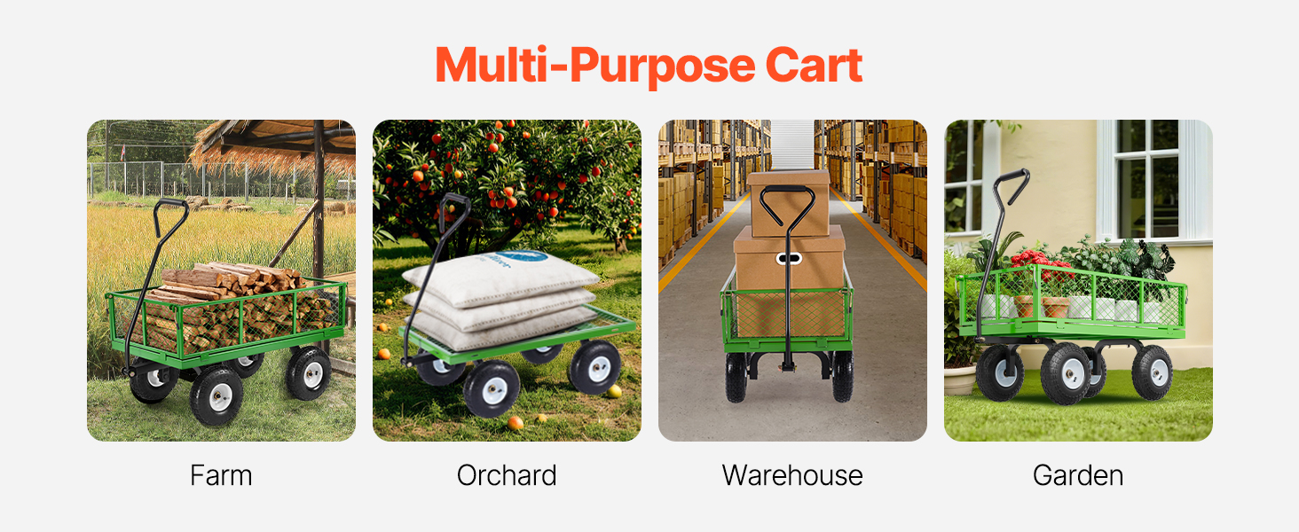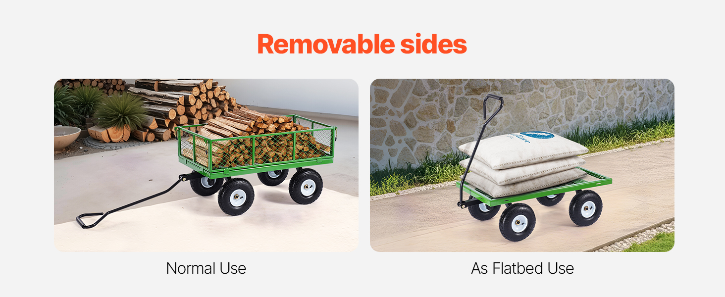 • 2-in-1 Universalus Dizainas: Su kabrioleto režimai kaip aptvertas krepšelį ir planšetinio krepšelį, tai universalus sodo krepšelį sedanas prisitaiko prie įvairių užduočių. Nesvarbu, ar esate traukti birios medžiagos arba didelių gabaritų daiktų, ji aptarnauja juos be vargo. Jos 4.52 cu. pėdų. apkrovos lova suteikia daug erdvės visiems savo sodo ir transportavimo poreikius.