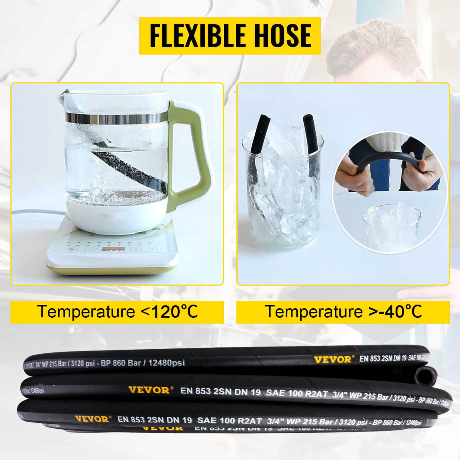 Didžioji hidraulinės alyvos žarna gali dirbti nuo -40 ℉ iki 248 ℉, atsparus oro sąlygoms, korozijai atsparios, ir sprogimų.
