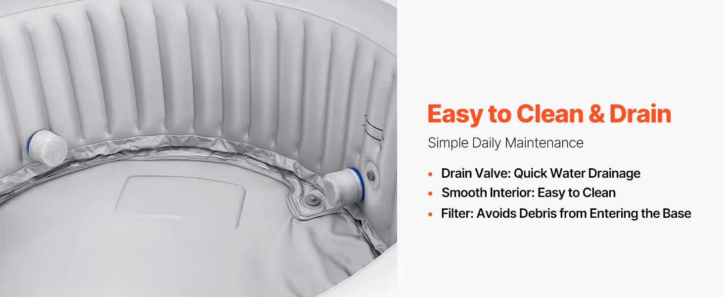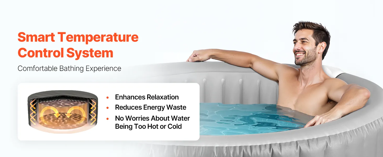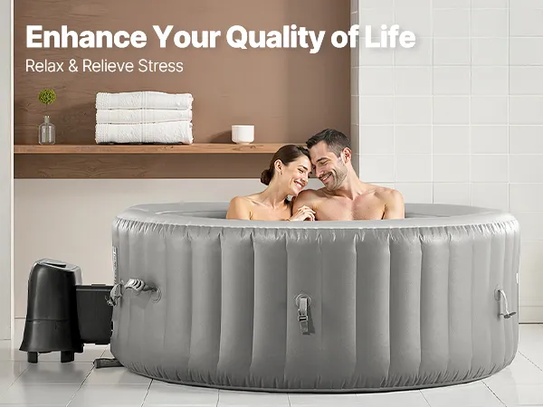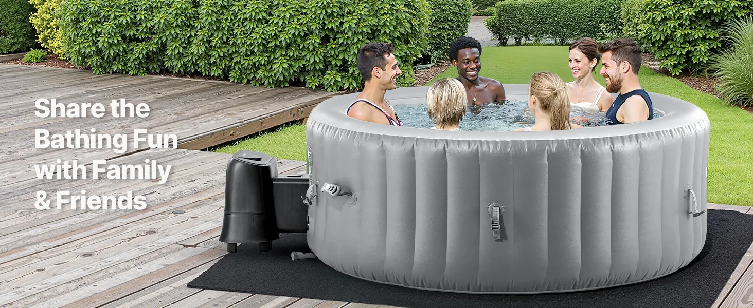 The stable warm water temperature helps relax muscles and relieve stress, providing a deeper soothing effect. This 94.5 x 26-inch spacious inflatable spa hot tub is suitable for family gatherings or spending time with friends.