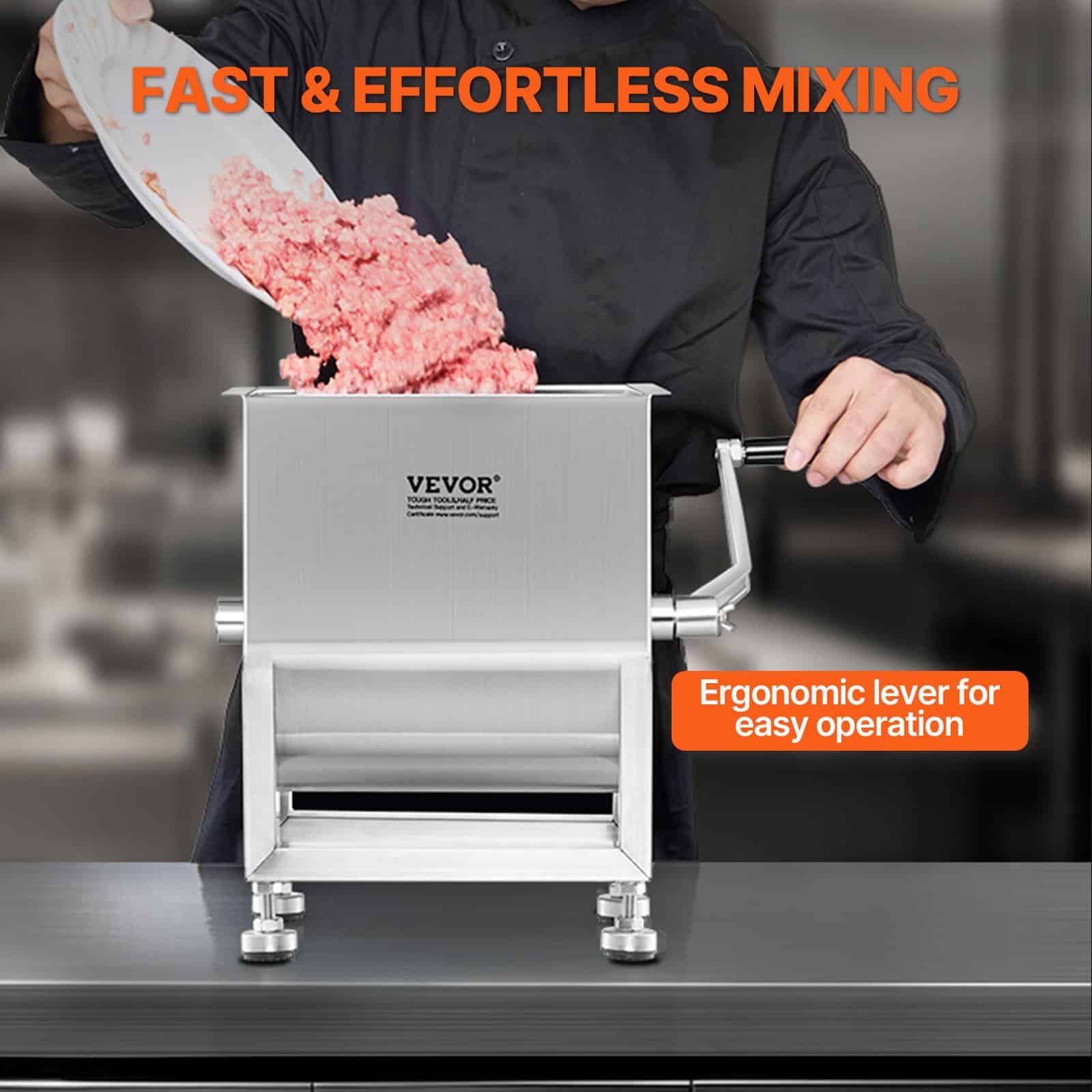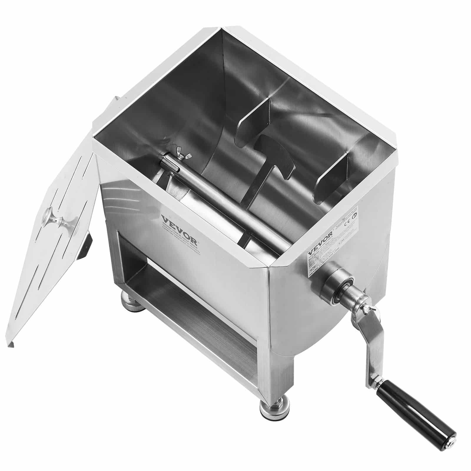 VEVOR Manual Meat Mixer, 15L Fixed Tank Meat Processing Equipment(Mixing Maximum 15LBS for Meat), Stainless Steel Meat Mixer, Sausage Mixer Machine with Lid and Handle, Ground Beef Hand Mixer