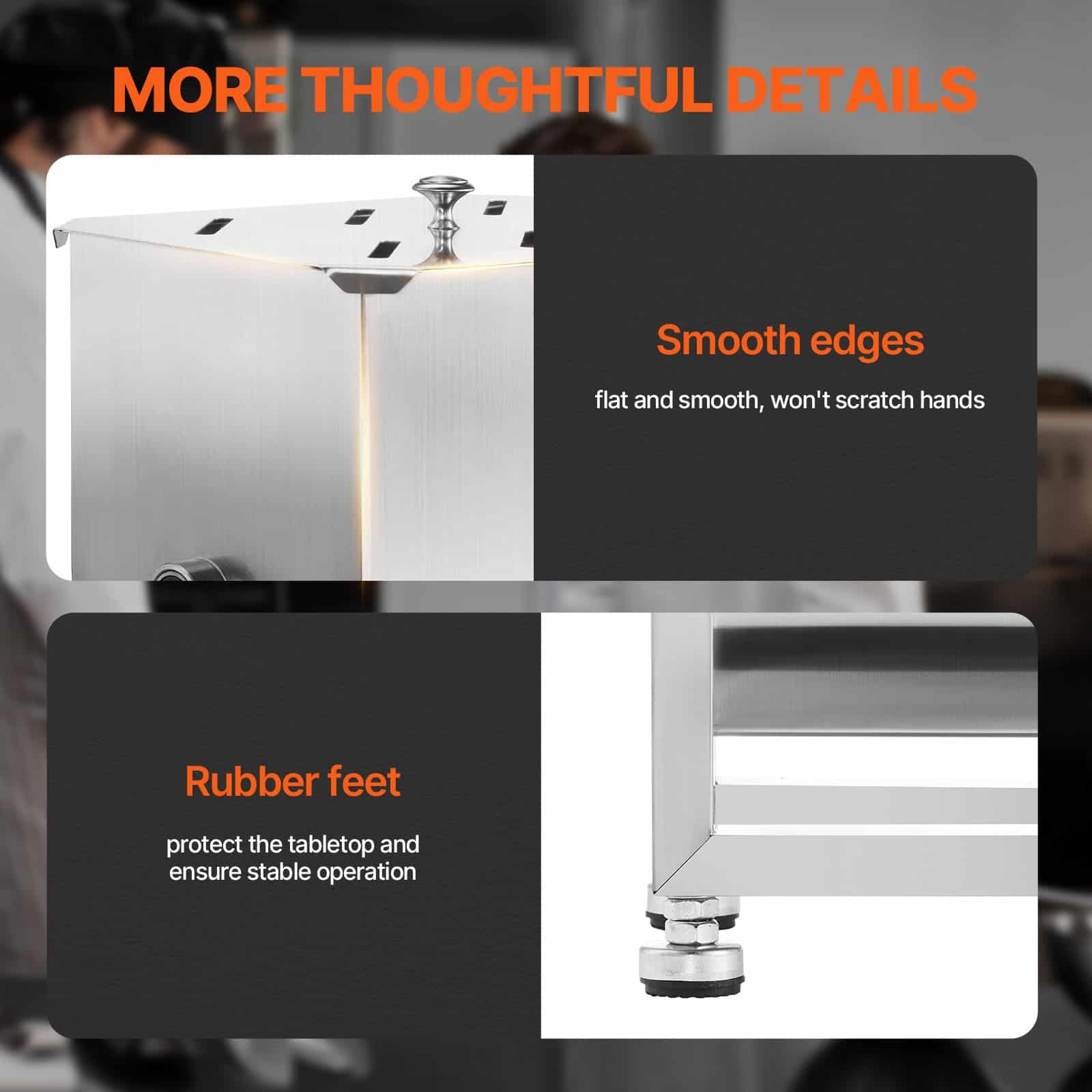Komerciniai rankinis mėsos maišytuvas yra įrengta su reguliuojamomis guminės kojelės, teikti aukščio reguliavimas 25mm (0.98 in). Šis projektas padeda apsaugoti paviršių, tuo pačiu užtikrinant stabilų veikimą.