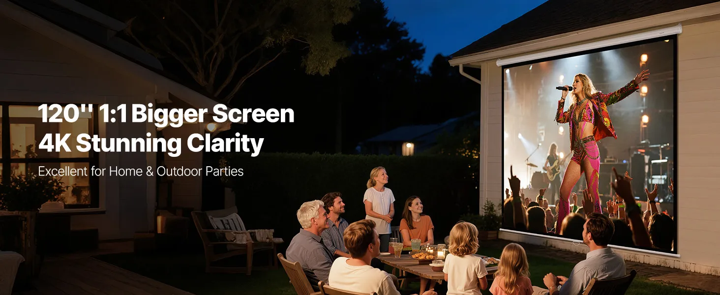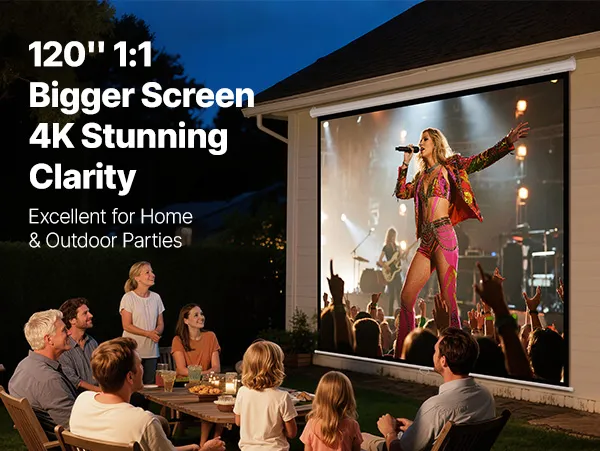 • Exquisite & Vivid Visuals: Crafted from high-reflectivity, wrinkle-free PVC material, the projector screen delivers 4K and shutter 3D high-definition visuals. Frame is rendered in detail, ensuring a flawless, immersive cinematic experience in dark and bright