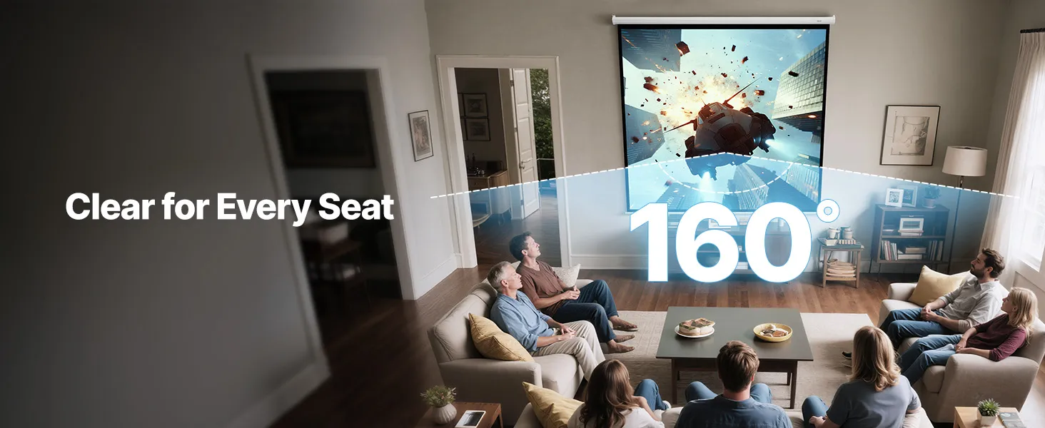 • Wide Viewing Angles: With a 160° wide-angle projection design, our projection screen ensures that viewers can capture crisp, clear images from any seat. This enhances viewing flexibility, making every corner a prime spot for enjoying the show