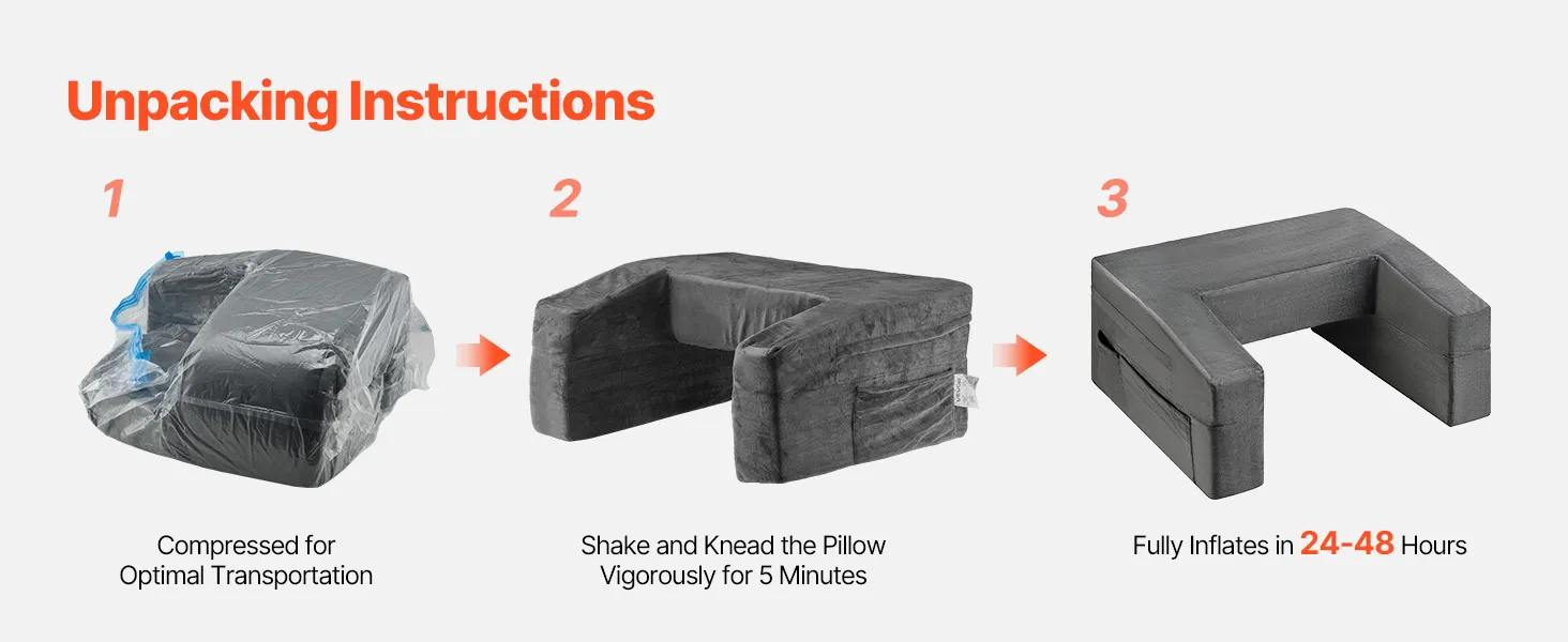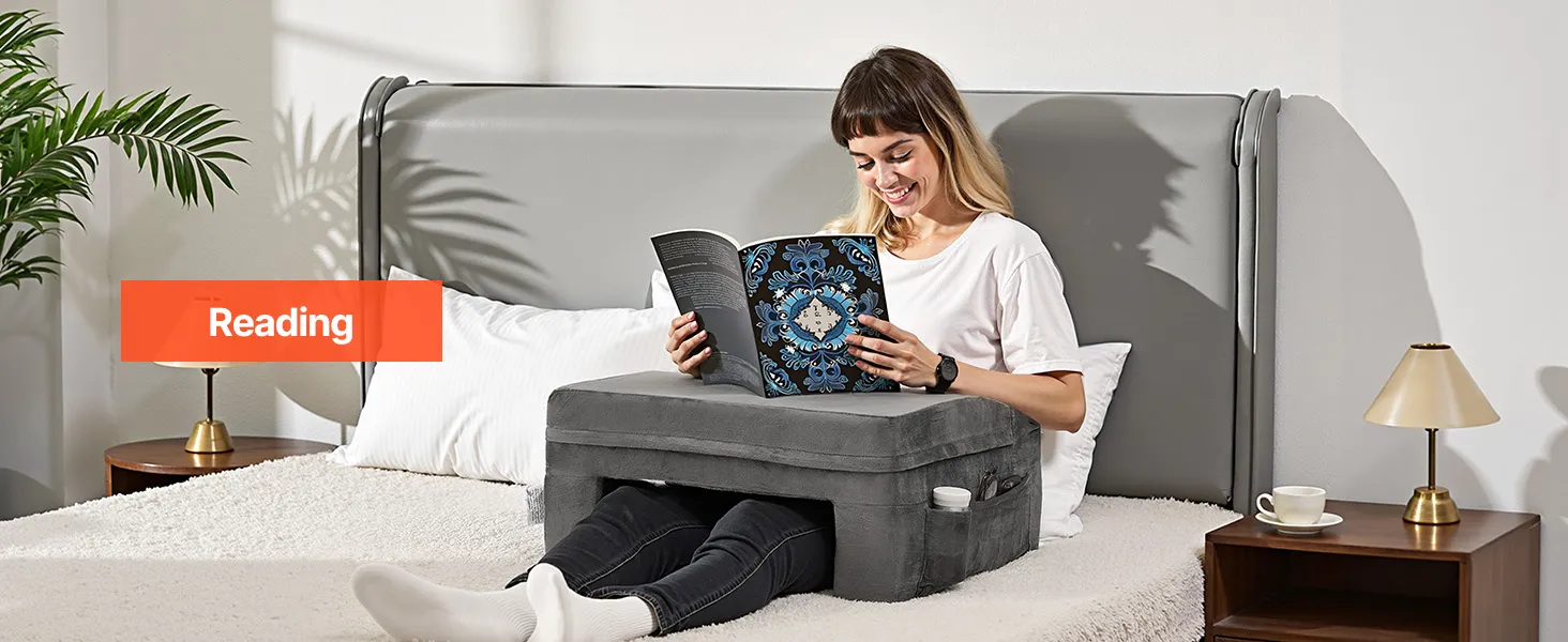 VEVOR Reading Pillow, Lap Desk Pillow with Washable Cloth, Large Bed Pillow with 2 Pockets and Cup Holder, Memory Foam Bed Rest for Reading, Gaming, Resting, Working, Grey