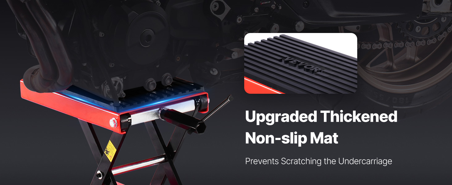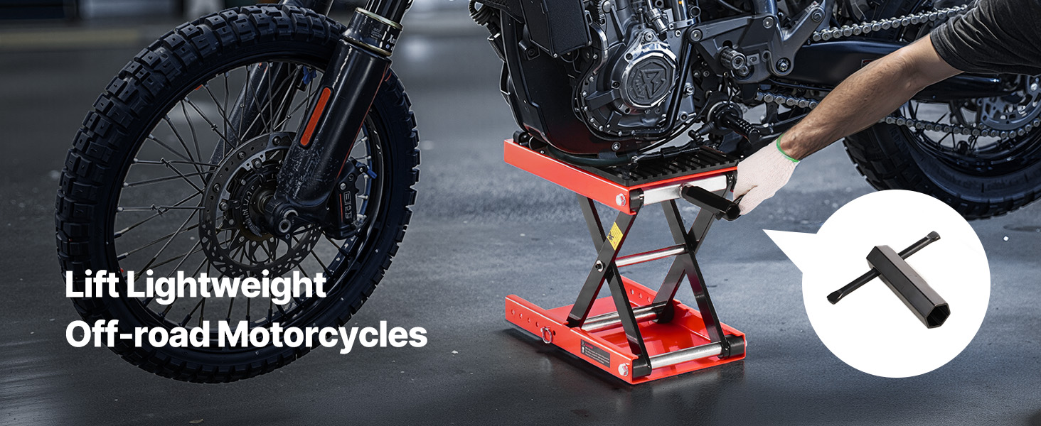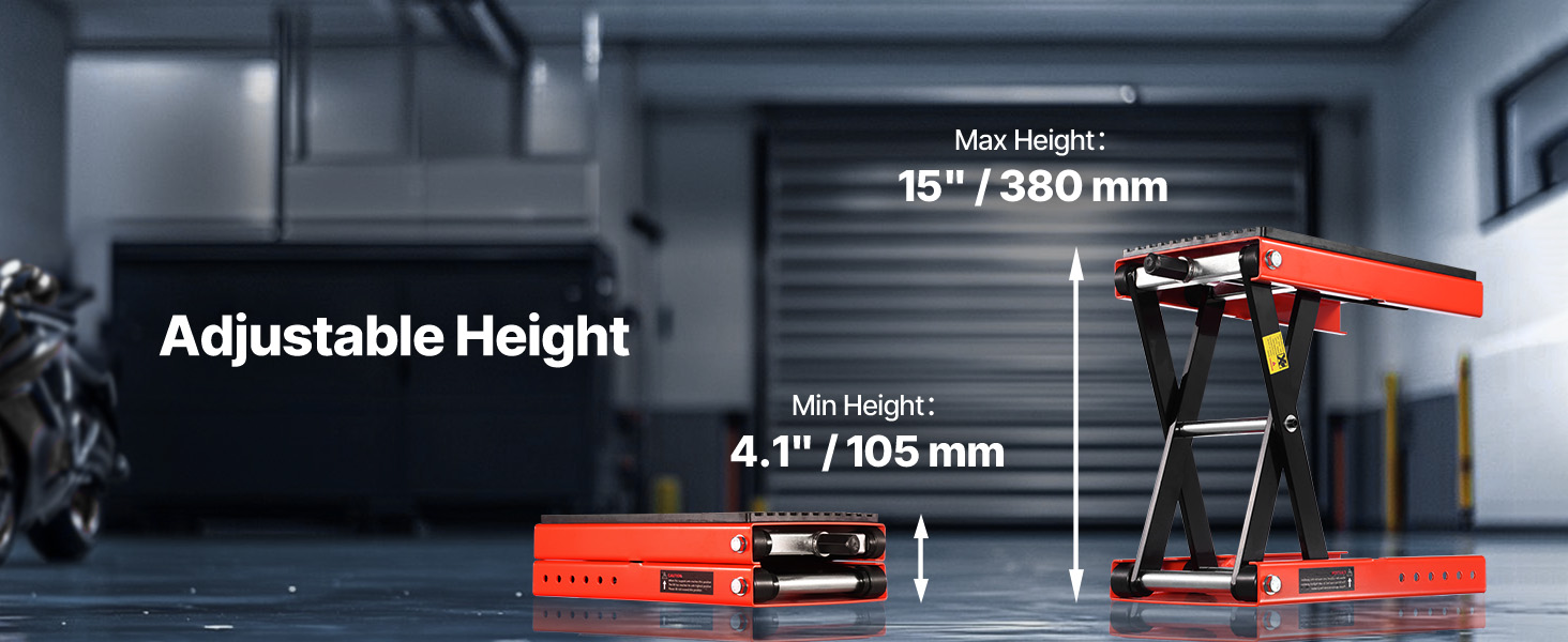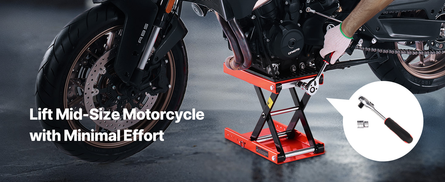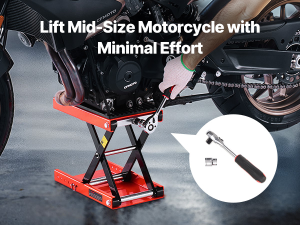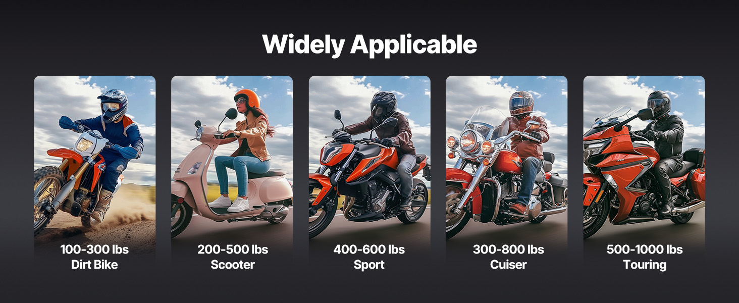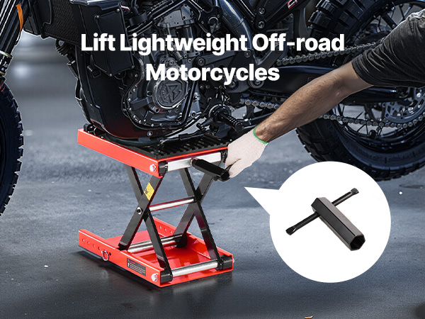 Šio motociklo keltuvas yra suderinamas su įvairių motociklų modelių, siūlanti stipri apkrova lengvai pakelti sunkiųjų motociklų. Puikios stabilumo ir reguliuojamo aukščio, tai daro motociklo priežiūros specialistas ir patogu. Komplekte saugumo pin užraktas saugiai pašalina aukštis.
