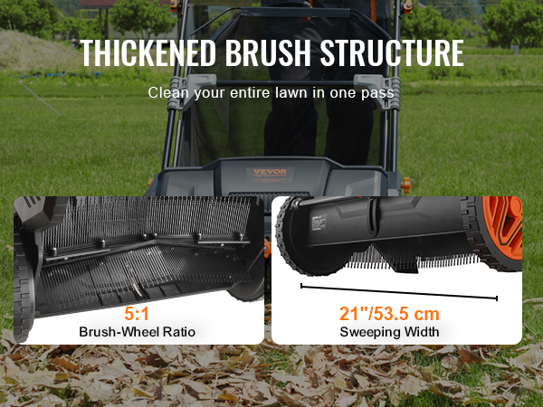 • Išlaikyti Savo Vejos Nesuteptas: Skirtingai nei dauguma vejos šlavimo mašinos, mūsų vejos šlavėjas turi sutirštės ir vienasluoksnės šepečiai padidinti bendrą valymo jėga ir išvengti deformacijos. Su šlavimo plotis-21"/53.5 cm, ji gali pasiimti 80% šiukšles vienas leidimas.
