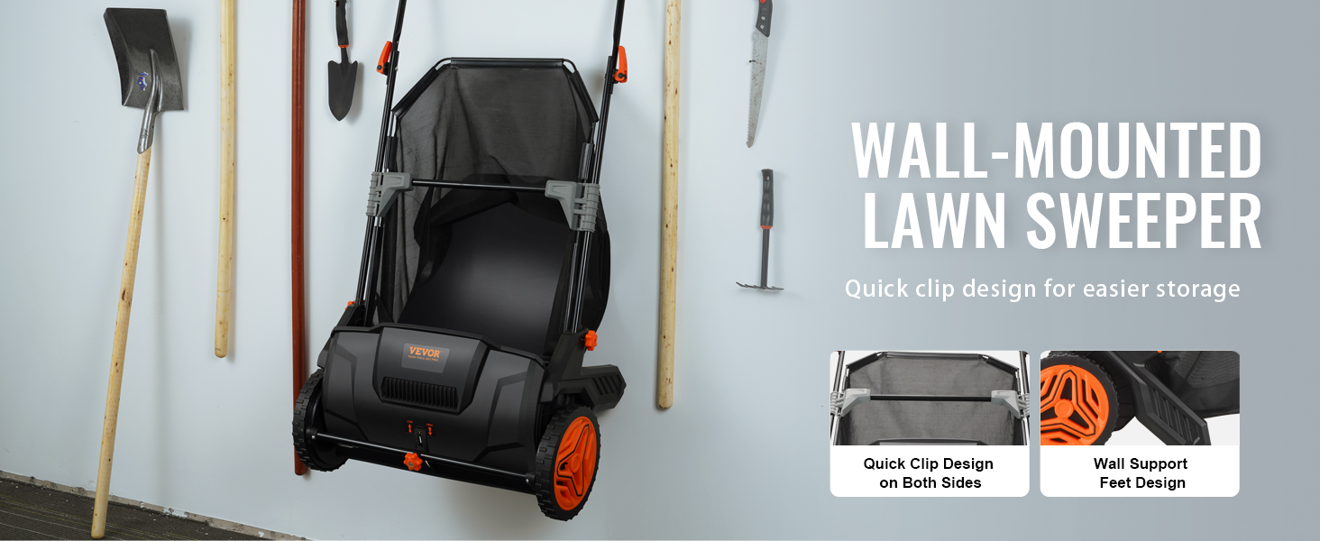 • Įdiegti & Store su Lengvumu: Mūsų rankomis stumti vejos šlavėjas turi pažangią saugojimo dizaino, todėl jį lengva įdiegti ir saugoti su greita įrašų iš abiejų pusių. Kai kieme darbai baigti, ji gali būti laikoma stoginė arba pakabinti ant garažo sienos. Apačioje paramos kojos liesos nuo sienos be apvirsti.
