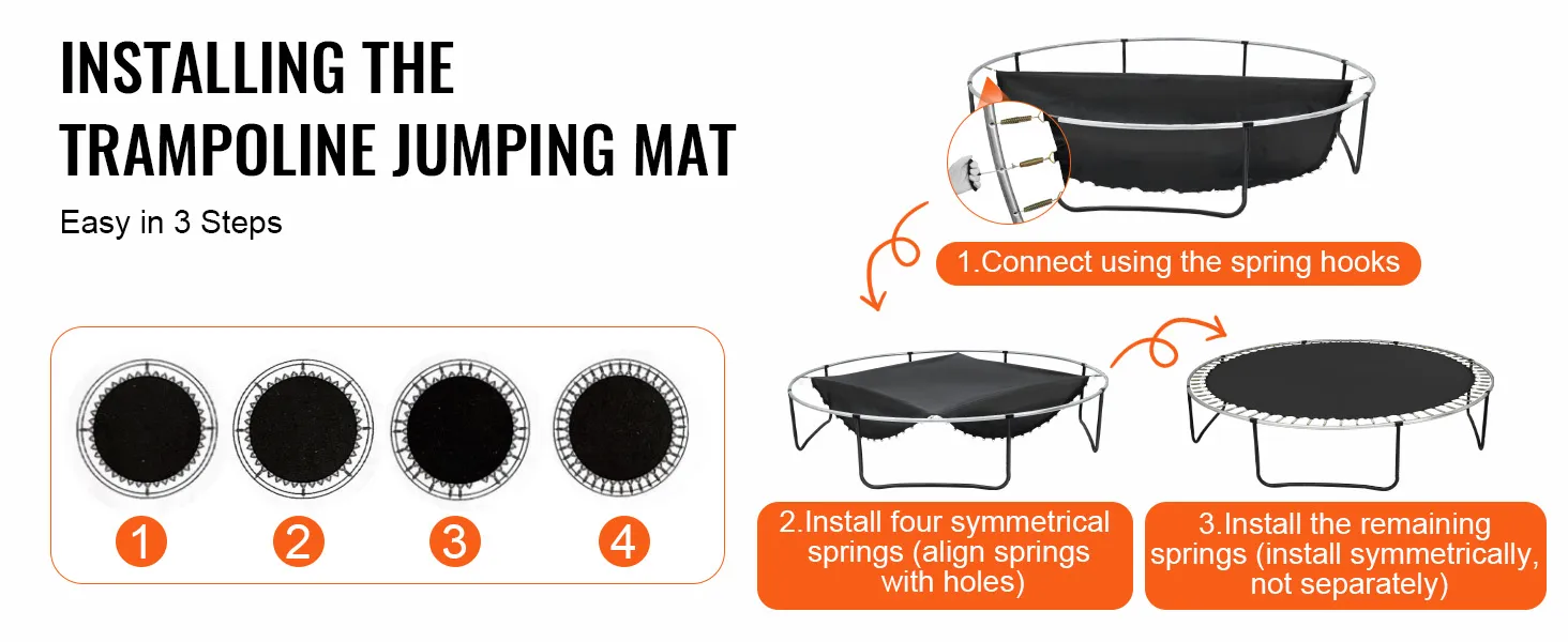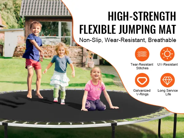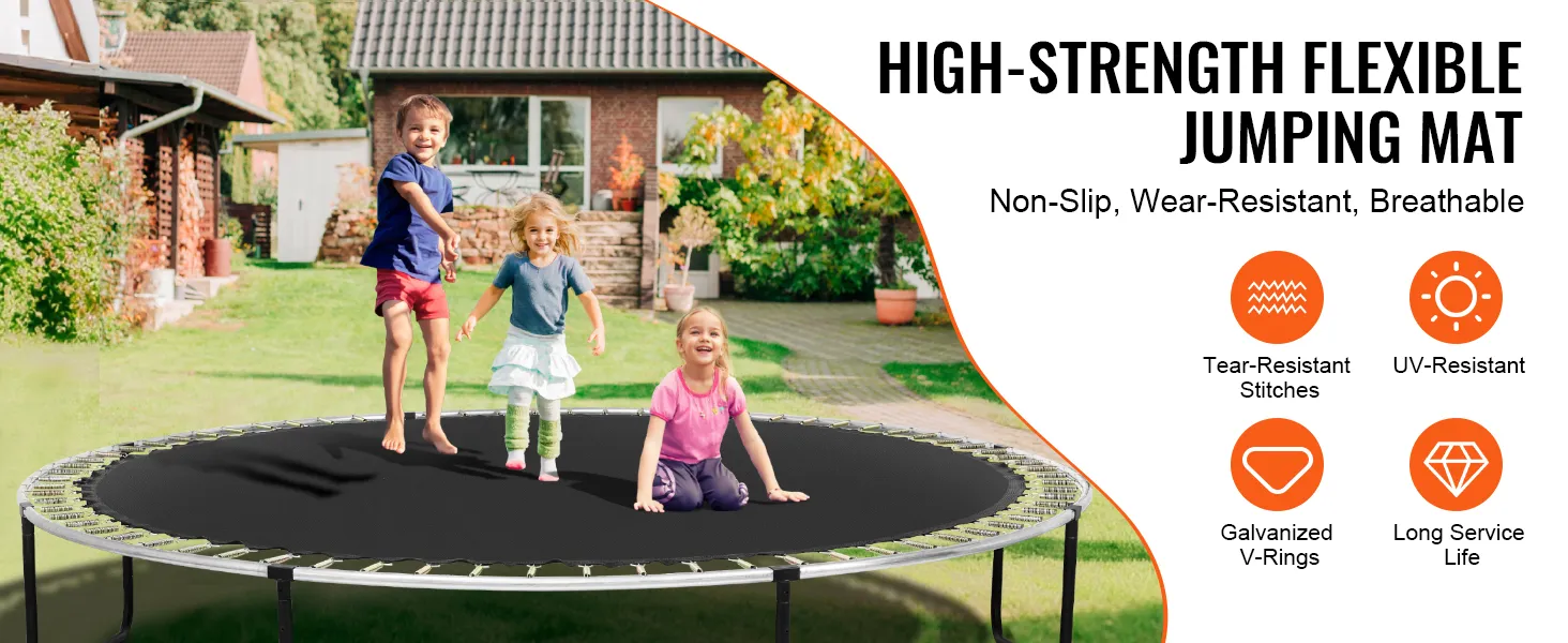 This premium round trampoline mat is widely used in trampolines at home, schools, parks, and playgrounds, helping to enhance children's jumping skills.
