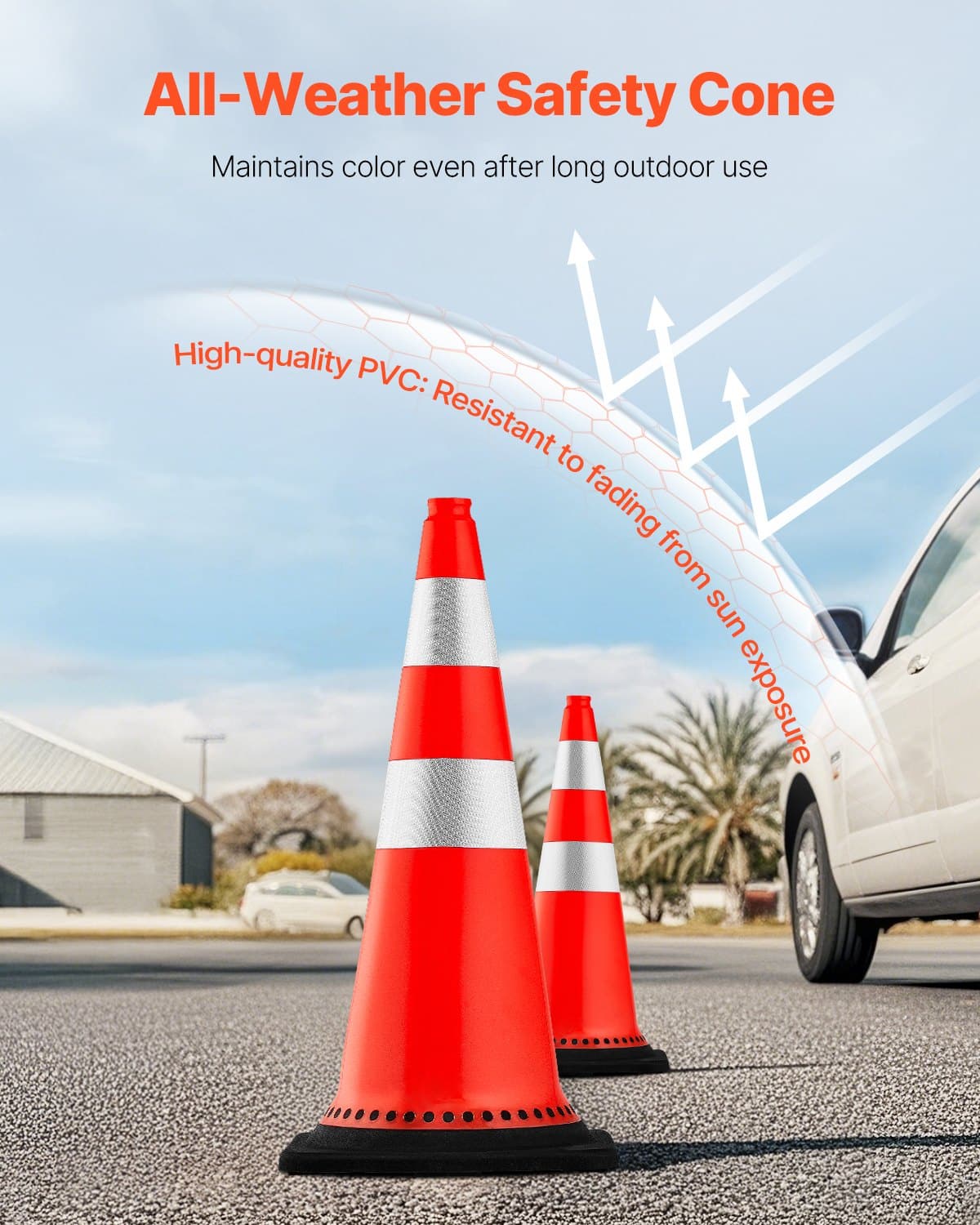 VEVOR Safety Cones, 8 x 30\" Traffic Cones, PVC Orange Construction Cones, Reflective Collars Traffic Cones with Black Weighted Base Used for Traffic Control, Driveway Road Parking and School Improvem