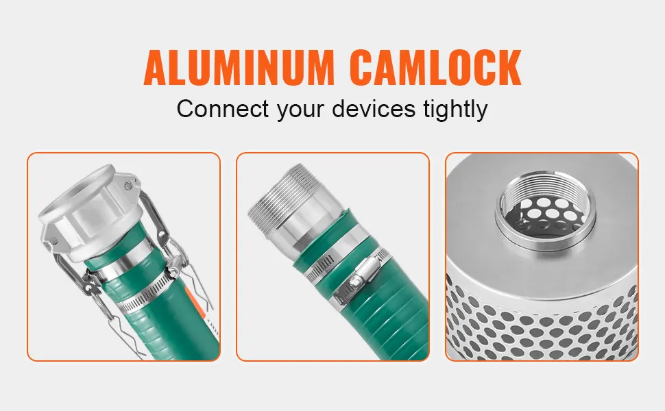 Aliuminio jungtys camlock įsiurbimo žarna yra patikimi ir gali atlaikyti aukšto slėgio vandens be sprogus arba nesandarus.