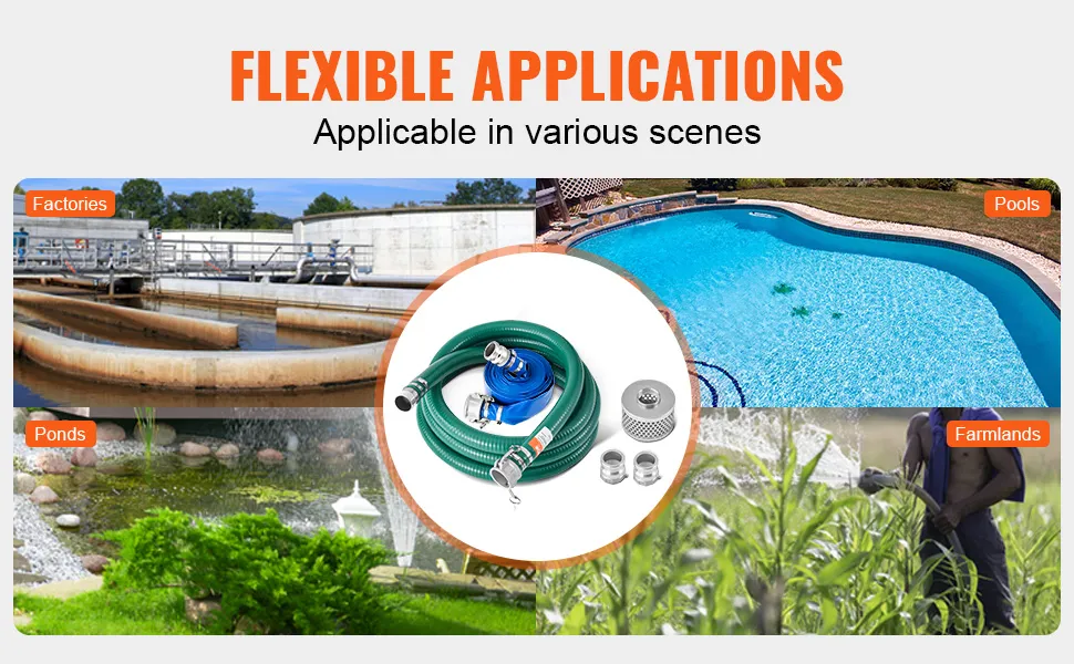 Mūsų žarnos rinkinys yra labai svarbus varikliu siurbliai ir 3 dalių: sunku siurbimo žarna (žalia), minkštas backwash žarna (mėlyna), ir jungiamosios detalės. Naudojami 2 x 50 pėdų siurbimo vamzdžiai, mūsų žarnos rinkinys yra patvarus, su smulkiais korozijos/rūdžių, atsparumas ir stiprus sandarinimo savybės, geras skirtingus siurblius įvairios scenos.