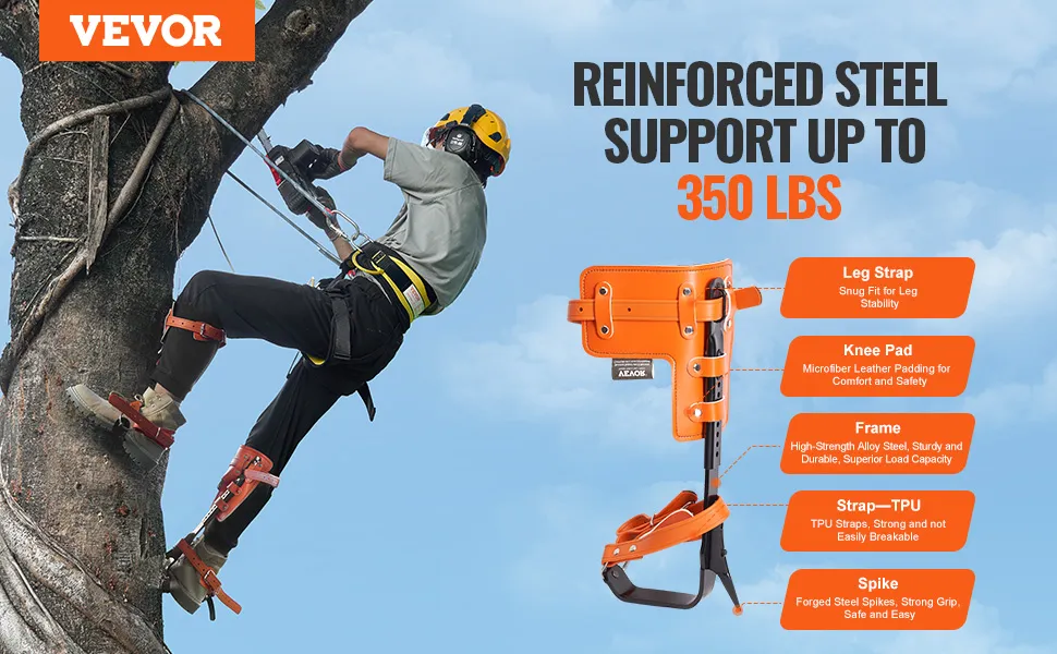 Mūsų medžio laipiojimo šuoliai funkcija tvirta didelio stiprumo legiruotojo plieno rėmas su stipri apkrova. Dirželiai atitikti kojos, patogi ir saugi tinka. Specialiai aukštuminiai darbai, jie idealiai tinka medžių genėjimas, vaisių skynimas, ir pole darbą.