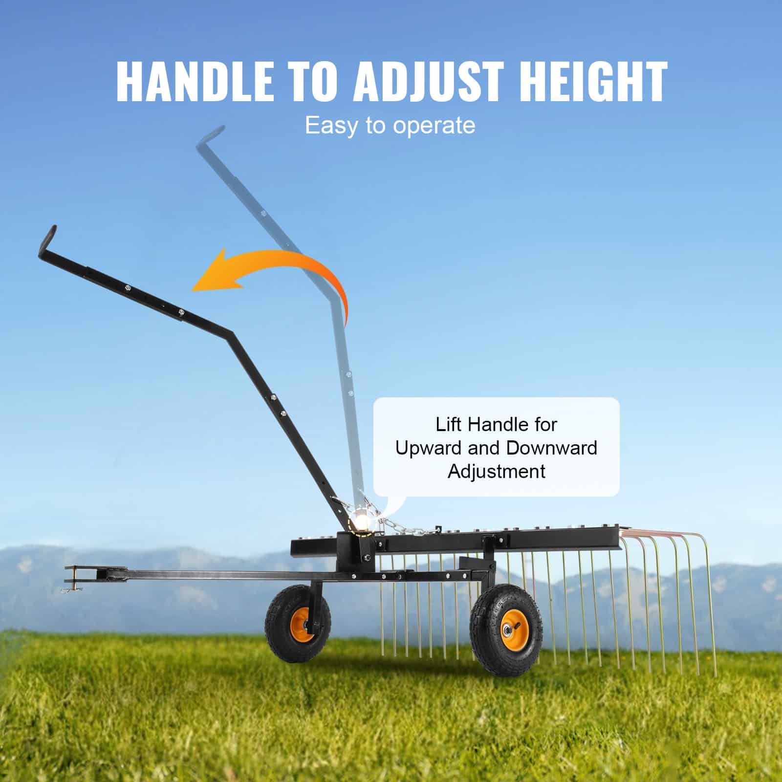 • Veiksminga Piktžolių Šalinimas: evakuatorius-už dethatcher yra 24 tvirtas, aštrių plieno dantims su 60" darbinis plotis, efektyviai valo sausa žolė, pašalina šakos, ir renka lapų, šieno ir kitų medžiagų. Tai yra daug veiksmingiau nei tradicinių rankinių įrankių ir lapų grėbliai.