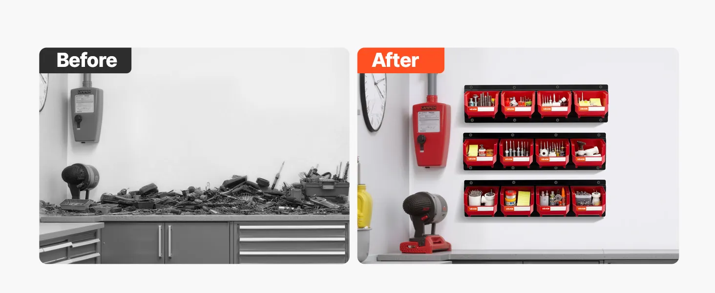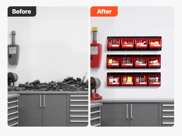 • Durable & Practical: Crafted from sturdy, easy-to-clean PP plastic with reinforced steel durable pegboard, these garage organizer bins can be stacked, hung, or placed flat. No wobbling, no breaking, fully reusable