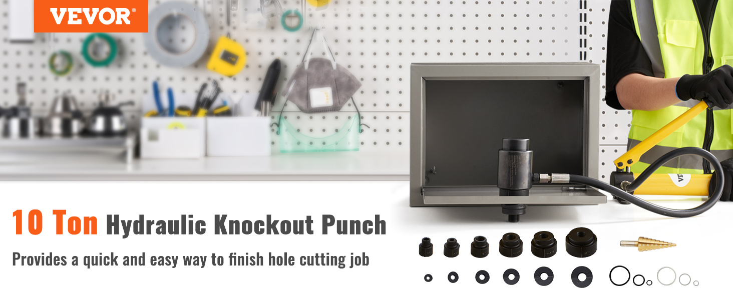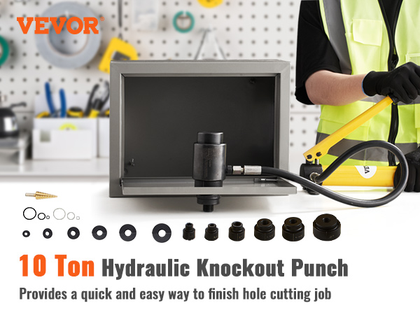 VEVOR 10 tonnu hidrauliskais izsitēja komplekts, 13-51mm (1/2"-2") cauruļu griešanas komplekts, 6 gabalu KO instrumentu komplekts metālam, alumīnijam, misiņam, nerūsējošam tēraudam, stikla šķiedrai un plastmasai