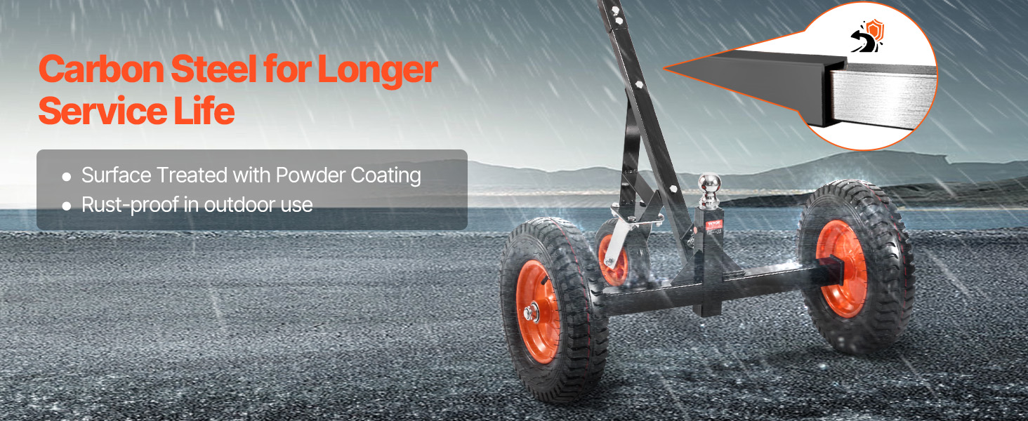 • Izcila kvalitāte: Izgatavots no augstas kvalitātes oglekļa tērauda ar pulverkrāsojuma virsmu, mūsu piekabes pārvietotājs ir nerūsējošs un stilīgs lietošanai ārpus telpām. Paplašinātā riteņu bāze padara jūsu darbu stabilu un bez piepūles gan kalnā, gan lejup pa ceļiem. 39,4 collu garais rokturis ir labi izstrādāts ērtai vilkšanai, neliecoties.