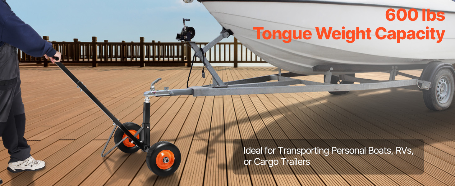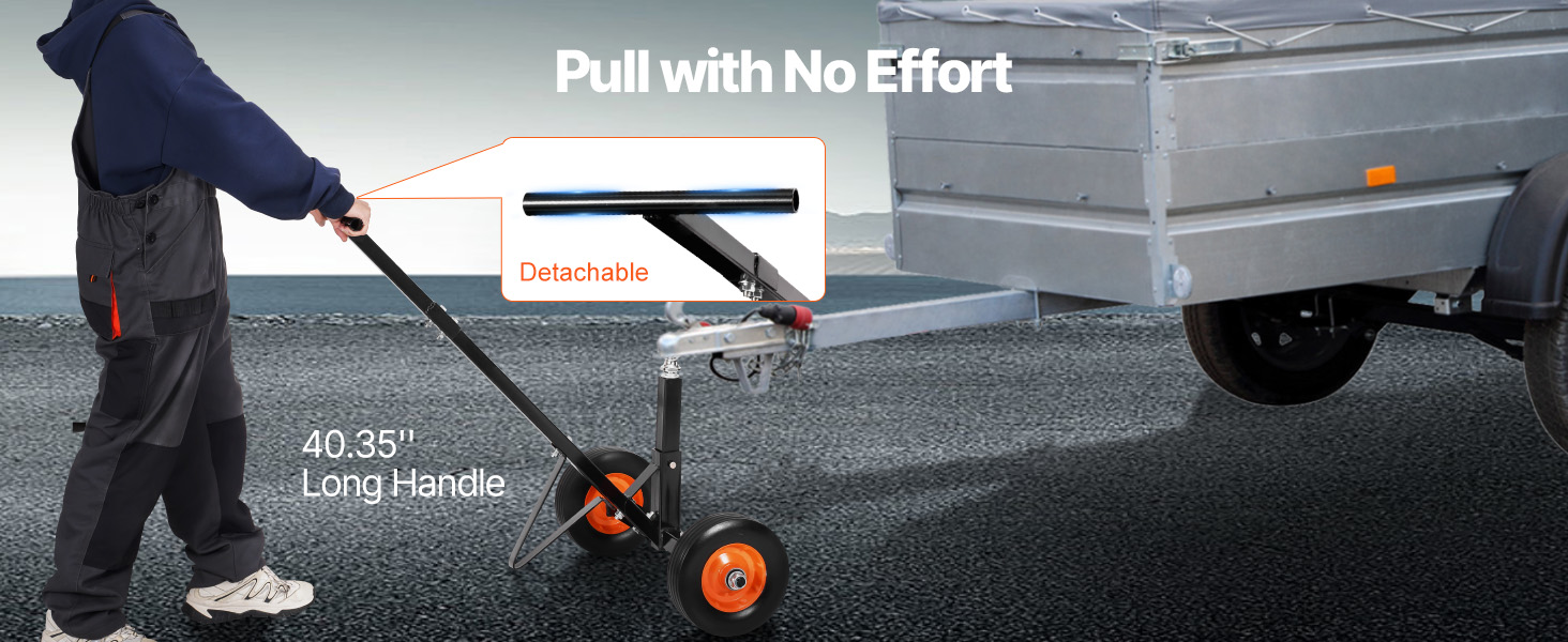 This dolly for trailer features 600 lbs tongue weight capacity, which can move heavy trailers easily in a short distance.