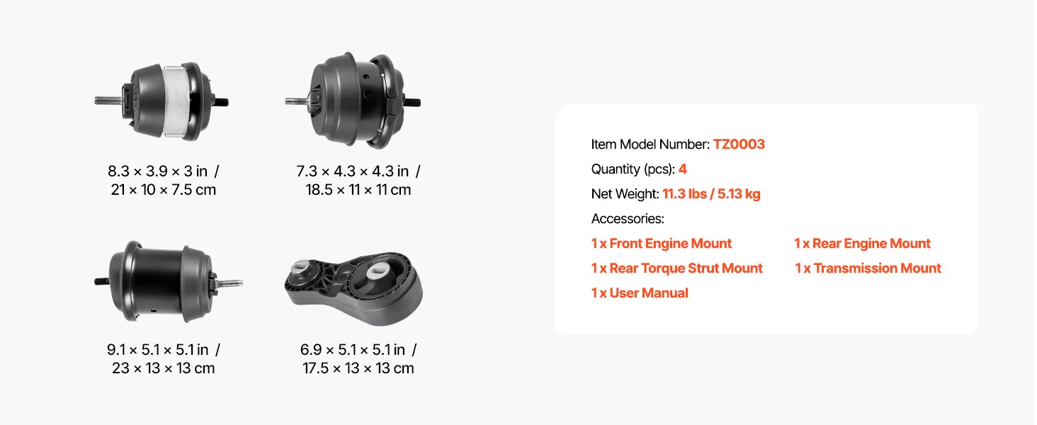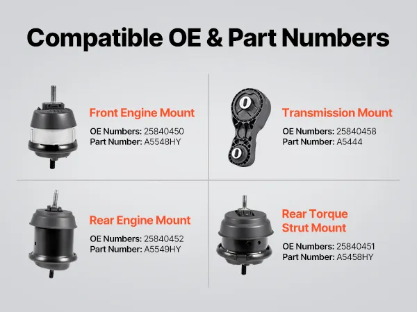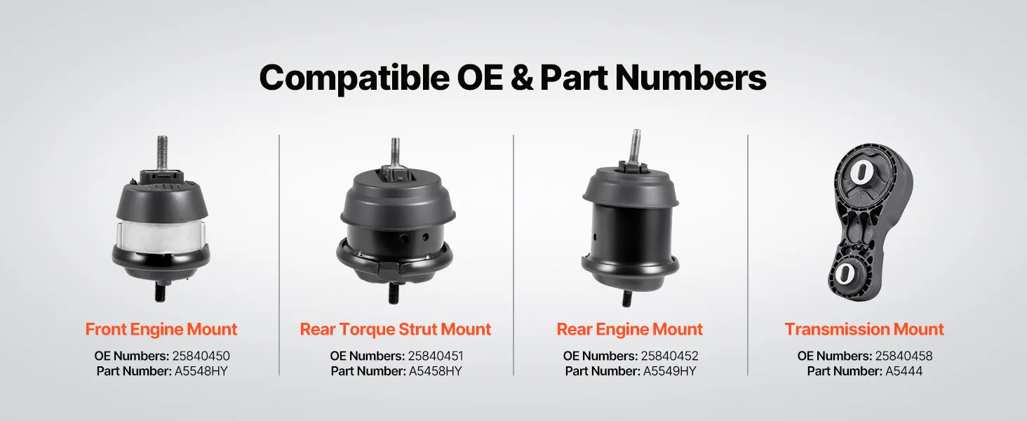 You can confirm fitment by checking your vehicle’s VIN or OE number. This ensures the right motor mounts replacement for your car, avoiding installation failures or repeated swaps caused by mismatched dimensions or interfaces, ensuring a secure fit and hassle-free use.