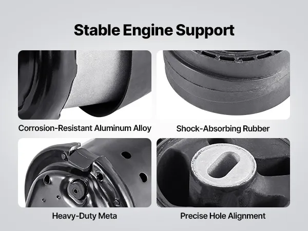 Heavy-duty metal provides high-strength engine support that is corrosion-resistant and long-lasting, while the rubber layer absorbs vibrations and minimizes noise. The combined material advantages ensure both durability and stability, extending the overall service life.
