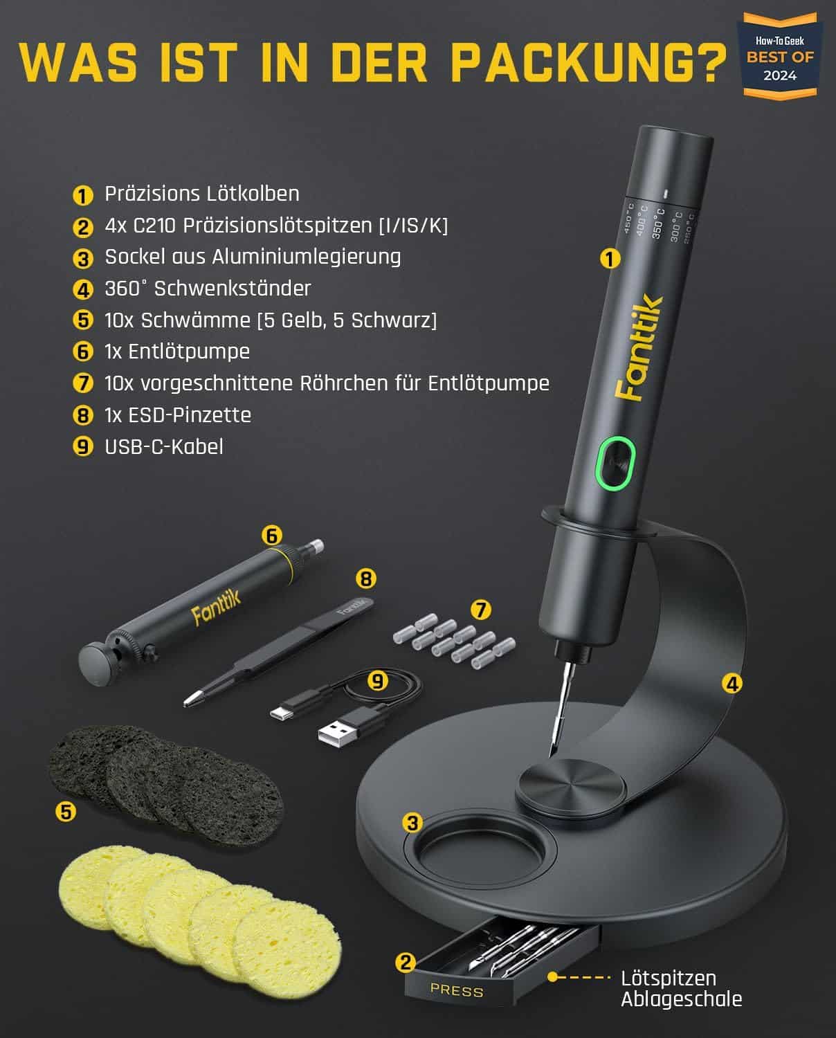 Fanttik T1 Max Precision Soldering Iron Set, 7 Seconds Fast Heating, 6 Temperature Adjustable 200~450°C, 4 Soldering Tips (C210), 360° Rotating Stand, Soldering Iron for Repairs