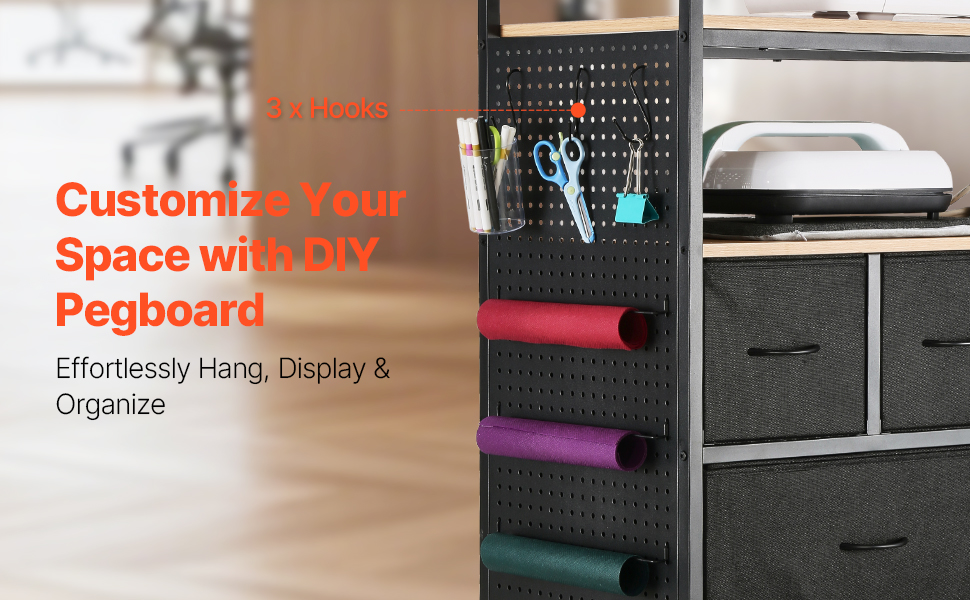 With a weight capacity of up to 110 lbs, this craft rolling storage organizer can handle heavy-duty crafting projects. Whether you're using a professional-grade craft machine, a large die-cutting machine, or multiple rolls of vinyl and heat transfer materials, our table provides stable support.