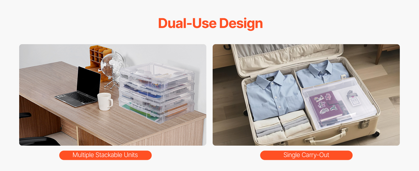 • Sakraujams dizains: Elastīgais sakraujamais dizains ļauj efektīvi sakārtot priekšmetus, vienlaikus maksimāli izmantojot vietu. Mūsu papīra uzglabāšanas organizators uztur jūsu telpu kārtīgu un sakārtotu.