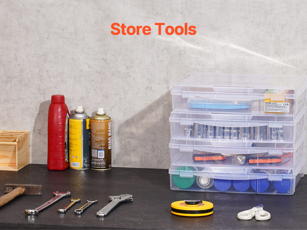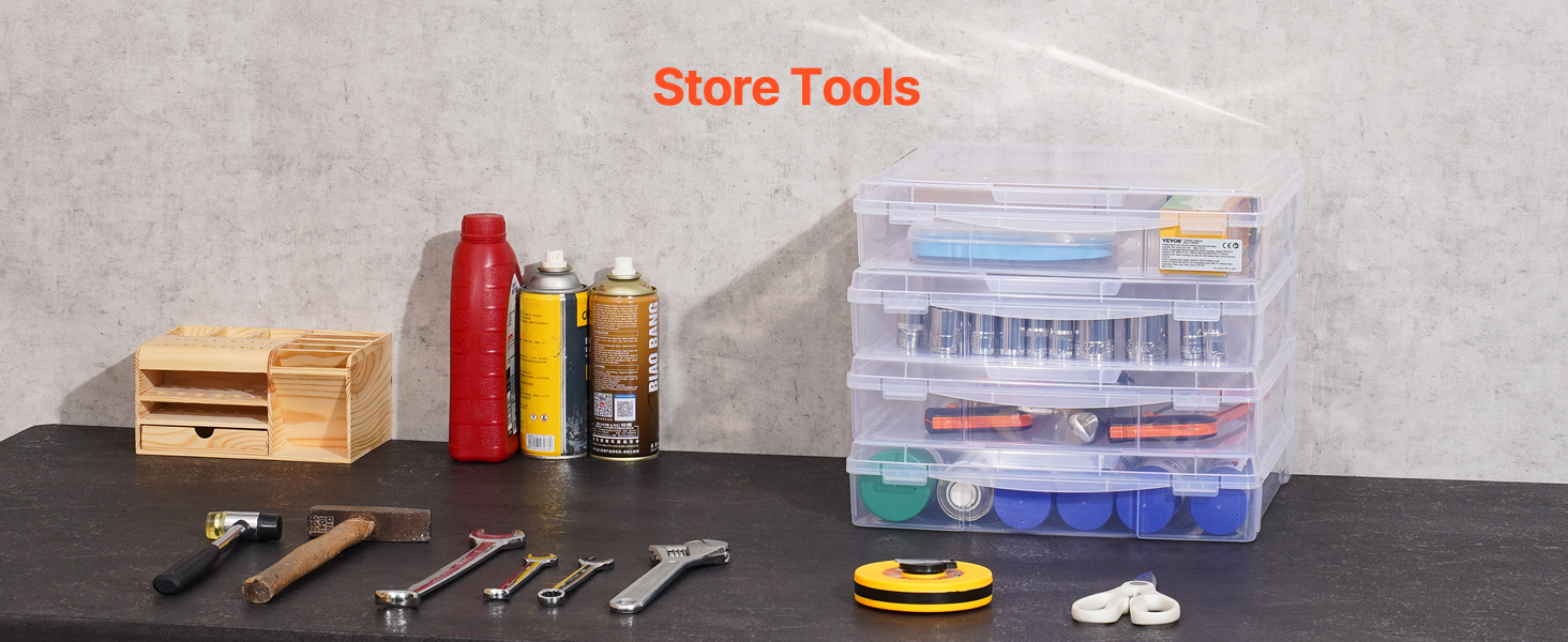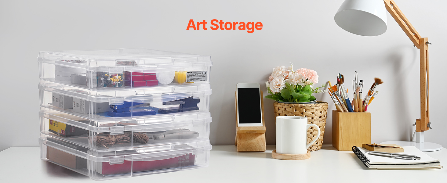 VEVOR 4 gab. caurspīdīgas sakraujamas 35x35cm plastmasas glabāšanas kastes ar aizdares klipšiem papīram, kancelejas un spēlēm