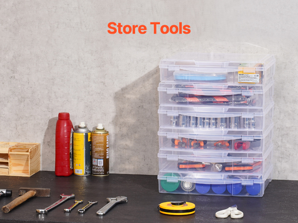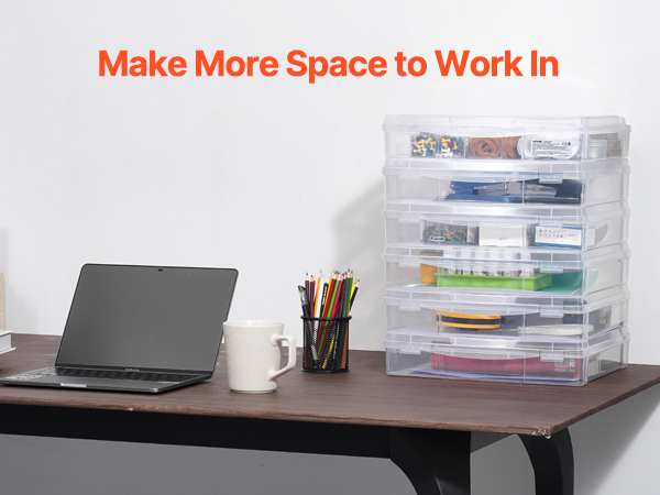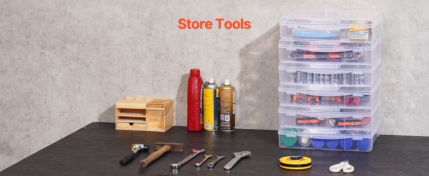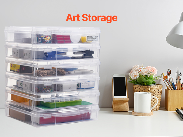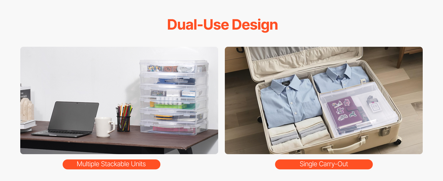 VEVOR 6-Pack Stackable Clear Plastic Storage Boxes 35×35 cm for Paper, Crafts, Office & School Supplies, with Double Latches