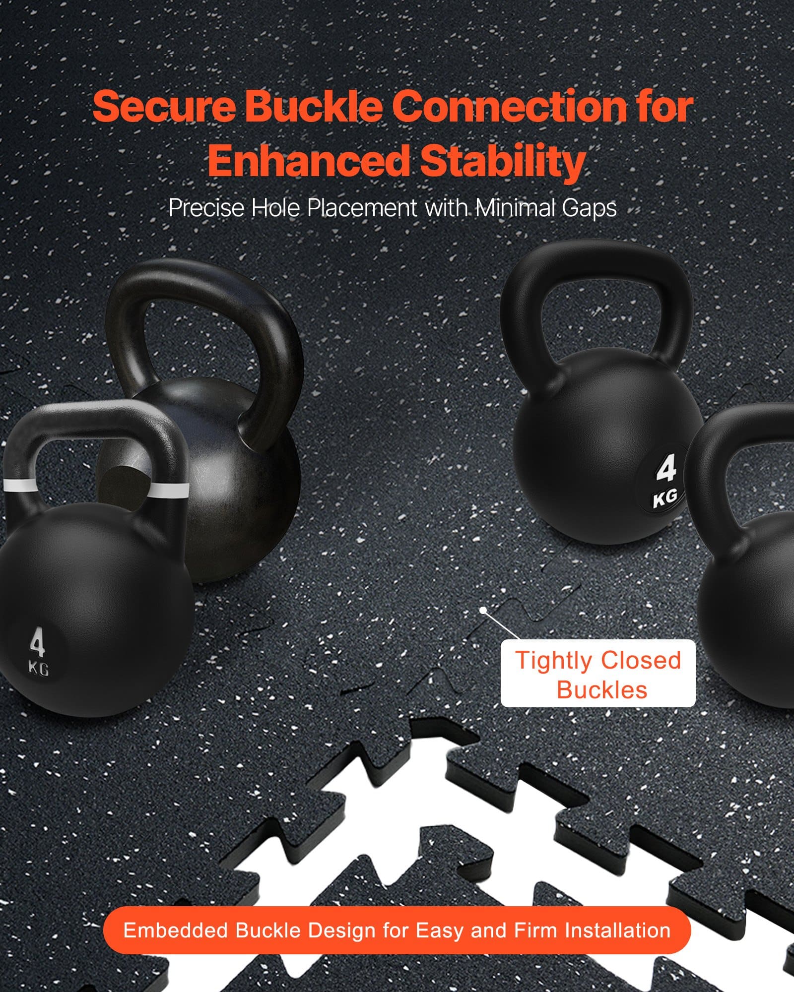 Šie savstarpēji savienojamie grīdas paklājiņi ir 0,56 collas biezi, tiem ir augstas kvalitātes gumijas virsējais slānis, kas nodrošina izcilu pretslīdes izturību, un augsta blīvuma EVA putu apakšdaļa efektīvai triecienu absorbcijai un atbalstam, garantējot divkāršu drošību treniņu laikā.