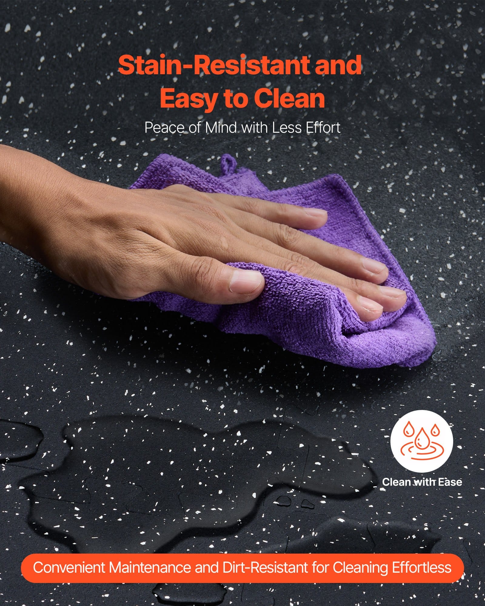 Izgatavots no ūdensnecaurlaidīga un mitrumizturīga materiāla, šis gumijas grīdas paklājiņš ir viegli tīrāms — vienkārši noslaukiet to. Tas ir piemērots mājas sporta zālēm, uzņēmumiem, studijām un komerciāliem fitnesa centriem.