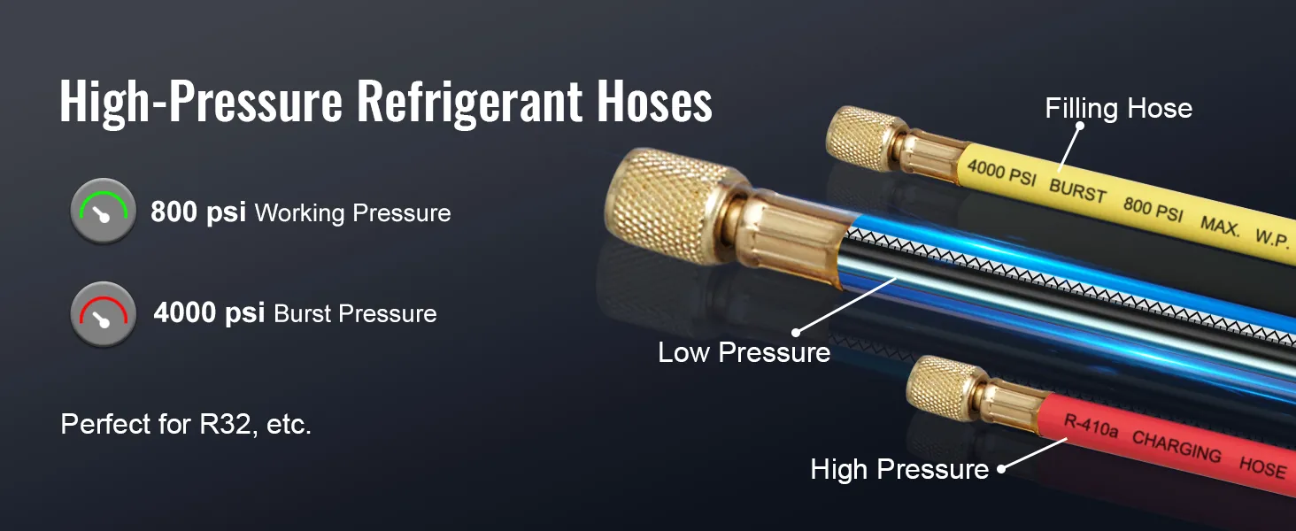 The manifold gauge contains the commonly used refrigerant scale, which is convenient for measuring various equipment.
